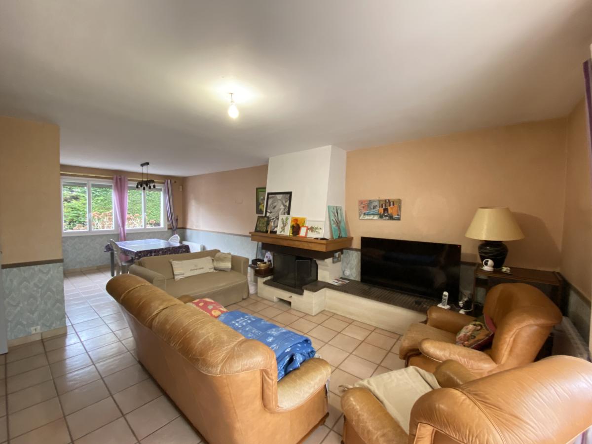 d'une vaste entrée avec placards, séjour salon avec cheminée, véranda, cuisine aménagée, trois chambres, une chambre avec salle de bains, et une salle d'eau.
