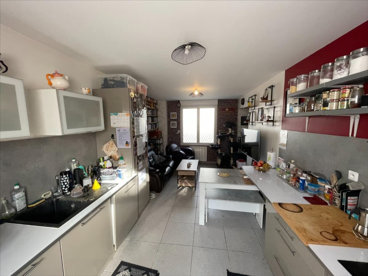 NOUVEAU ' Chez des Notaires à Mes Côtés', Aux Portes de CAEN, Une maison de ville entièrement rénovée (2014) composée au rez-de-chaussée : d'une entrée, pièce de vie ouverte sur une cuisine aménagée accès terrasse clos mur, un wc.A l 'étage : deux chambres, salle de bains.Combles aménagé au dessus. Terrasse et courette devant. Vendu libre Ou possible investissement locatif.