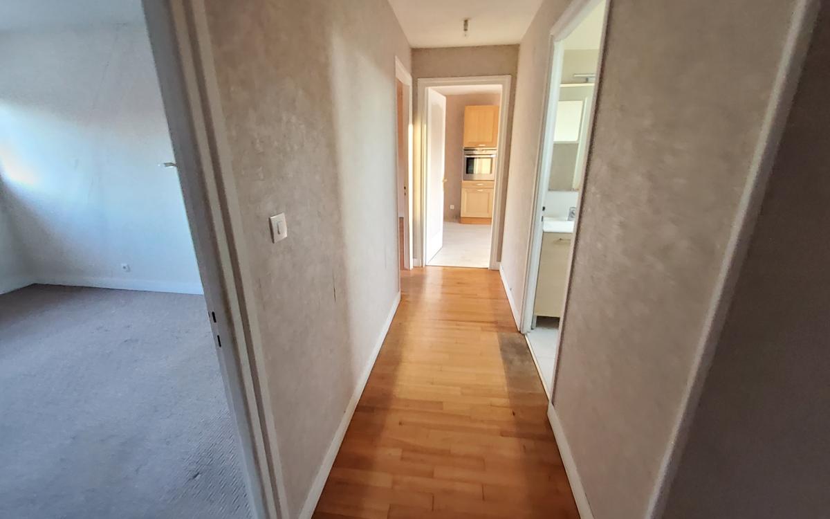 A Thury-Harcourt (Calvados), 3 rue du château, appartement traversant est/ouest de type F2 en parfait état au deuxième étage et dernier étage comprenant : Entrée, chambre avec placards, salle de bains, wc, couloir, séjour, cuisine aménagée et équipée. Cave, chauffage individuel électrique.