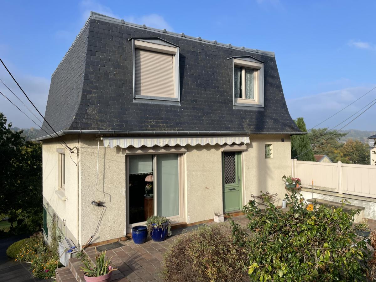 LISIEUX Maison de 1972 d'environ 90m², comprenant: RDC: entrée, séjour-salon avec terrasse et balcon, cuisine et wc. A l'étage: palier, 3 chambres et salle de bains Sous-sol: garage, débarras. Terrain de 700m²