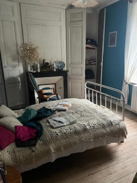 - Au rez-de-chaussée : Entrée, couloir, salle à manger avec cheminée, salon avec cheminée, cuisine.