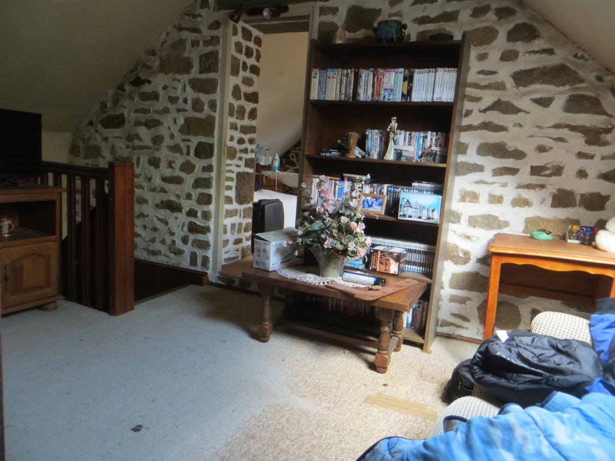 - au rez-de-chaussée : une cuisine - séjour avec cheminée (poêle à bois gainé), une chambre, une salle d'eau, WC.