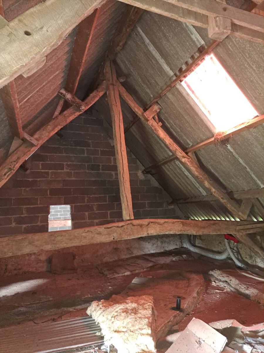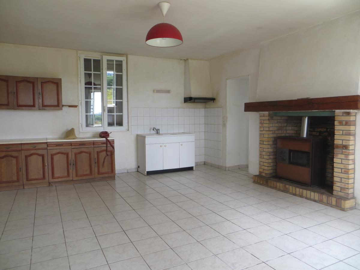 - une cuisine avec cheminée, un séjour - salon, deux grandes chambres, une salle d'eau, dégagement, et WC, et grenier au-dessus.