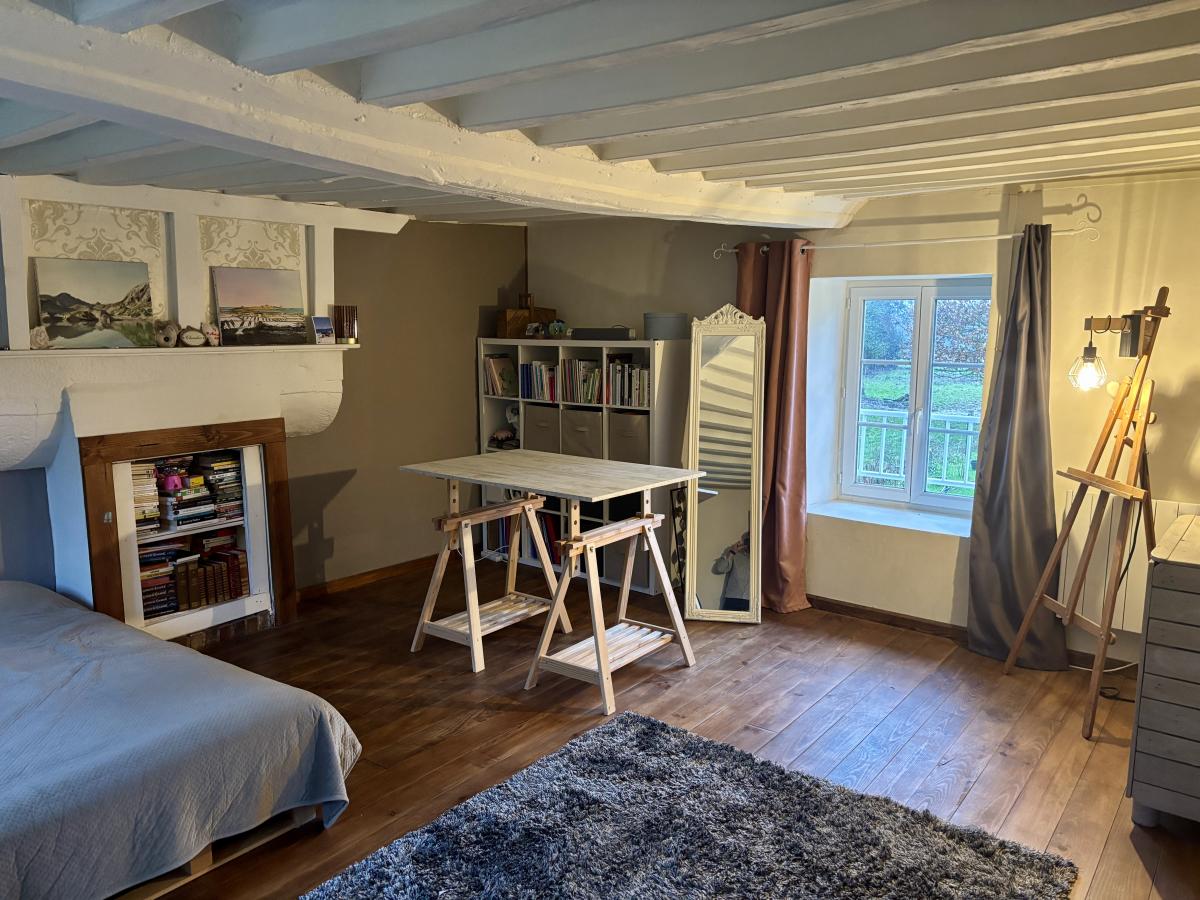 - Au rez-de-chaussée : séjour avec poêle à bois, cuisine aménagée et équipée et cave