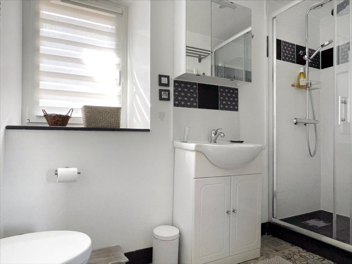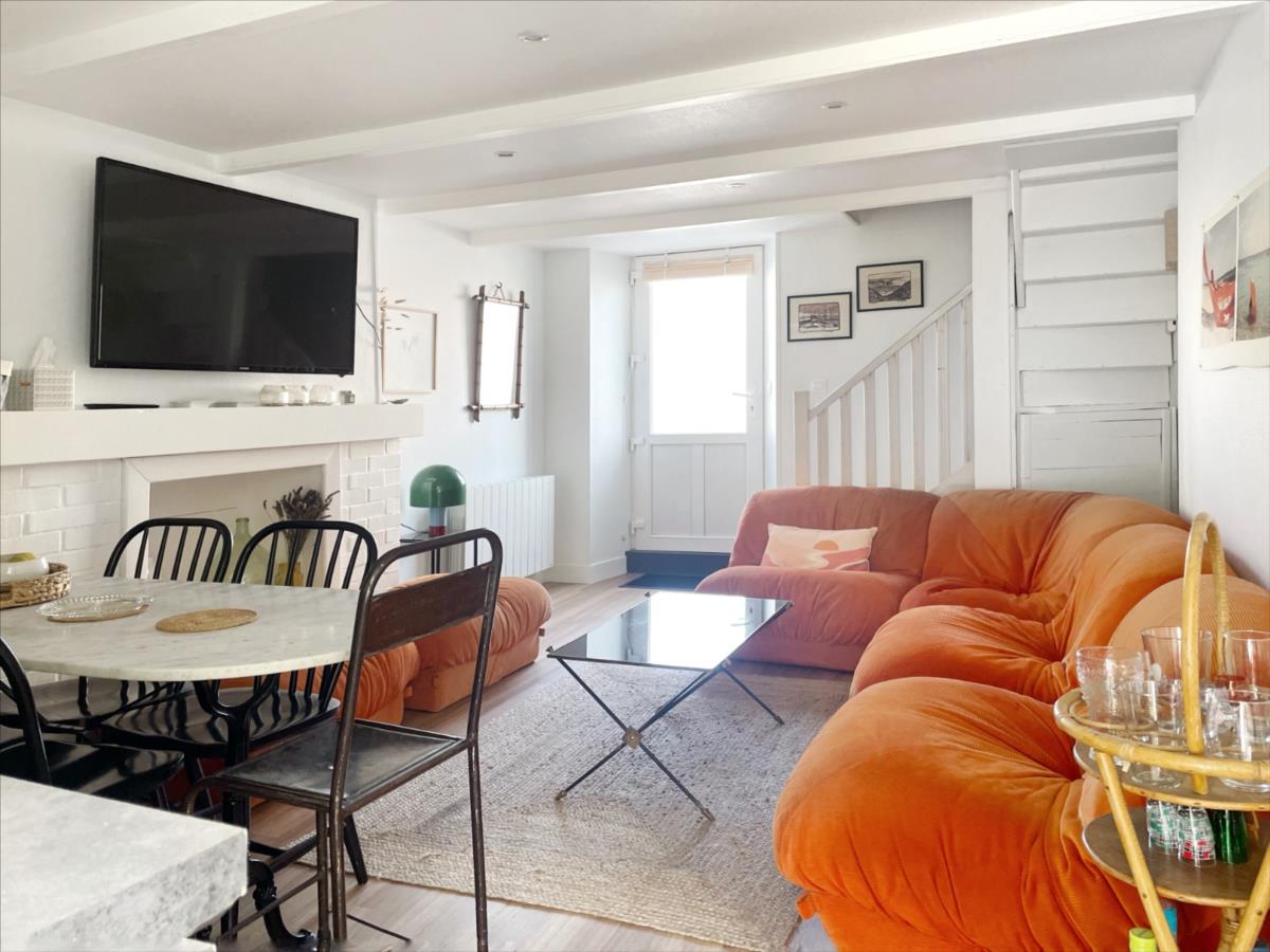 Beaucoup de charme pour cette maison de bourg entièrement rénovée proche de toute commodités à 1.5 km de la plage.Entrée sur pièce de vie avec cuisine aménagée et équipée. Terrasse neuve sur l'arrière avec cabanon en pierre. Au premier étage, une chambre avec salle d'eau et wc, accès à la seconde chambre. Idéal première acquisition et location saisonnière.