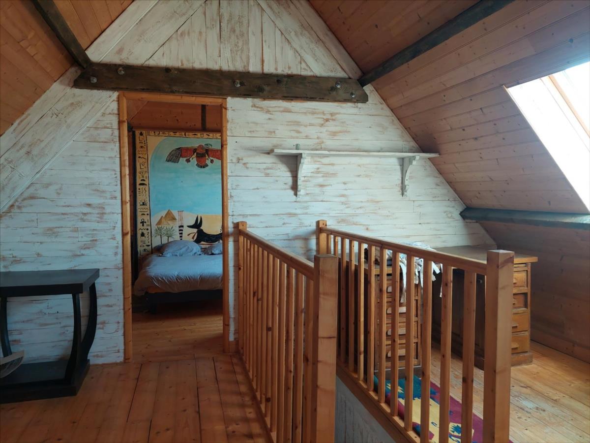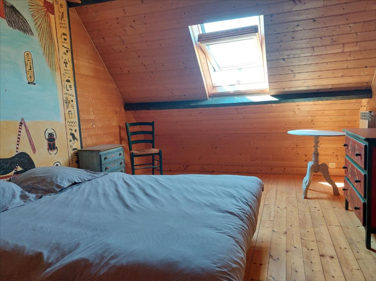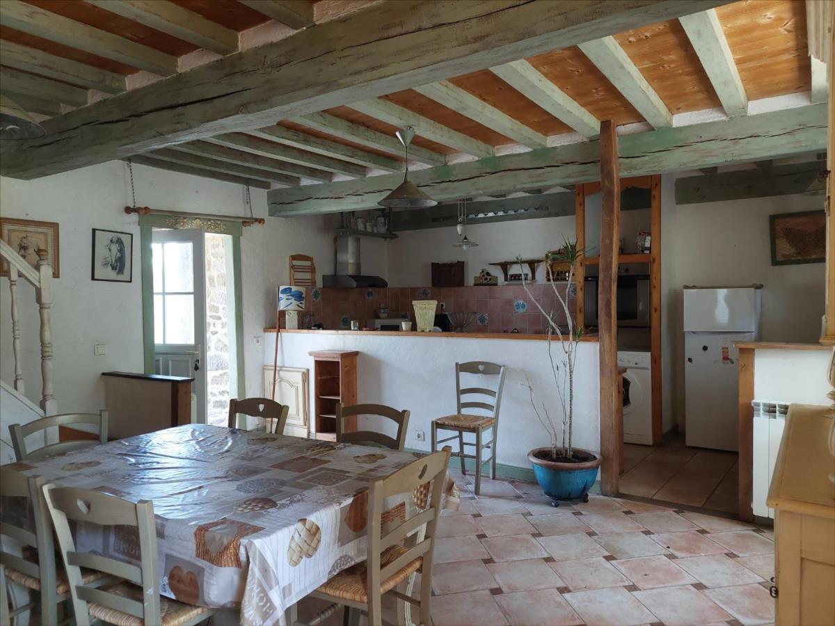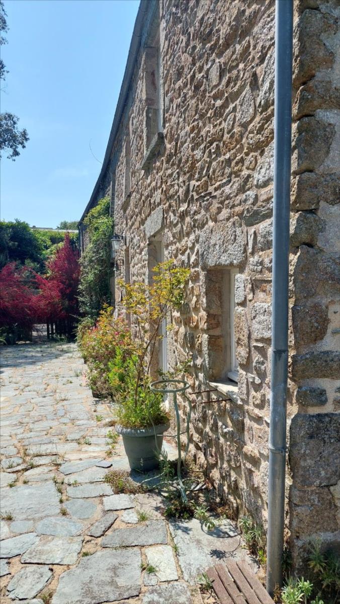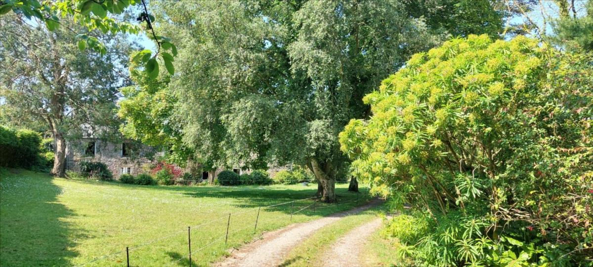 Une propriété ancienne de caractère, composée de : * Une maison d'habitation comprenant deux parties :- la première se répartissant ainsi :. Au rez-de-chaussée : entrée, salle d'eau avec WC, cuisine avec cheminée-insert, salon, une pièce avec départ d'escalier.. A l'étage : palier-couloir, trois chambres, salle de bains avec WC.. Au-dessus : grenier.* La deuxième : se répartissant ainsi :. Au rez-de-chaussée : pièce à vivre avec cheminée et cuisine ouverte;. Au 1er étage : pièce palière, chambre, salle de bains avec douche et baignoire.. Au 2ème étage : palier, deux chambres.A la suite : ancien bâtiment à usage actuel d'habitation couverte en plaque translucide et en fibrociment composée de . Au rez-de-chaussée : entrée, salon, cuisine, salle d'eau, WC.. A l'étage : (mansardé) bureau sur palier-mezzanine, une pièce à usage de chambre.En retour d'équerre, construit en agglos et couverts en fibrociment : une remise, un atelier, deux garages et des box.Cour sur l'arrière, terrain à la suite. Beau parc arboré devant .
