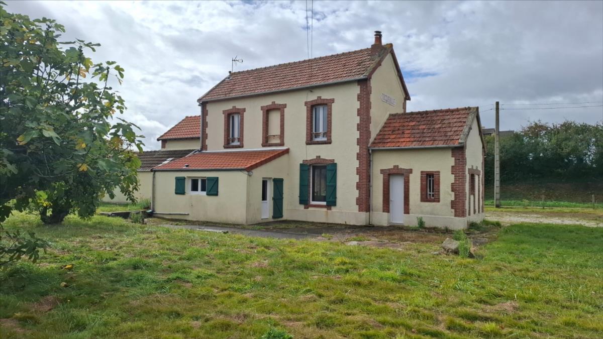 A 6 kms environ des commerces, ancienne gare à usage d'habitation sur un terrain de 2.236m² comprenant :. au rez-de-chaussée : grande pièce de vie à usage de salle - salon avec poêle à bois . En extension : cuisine.A la suite : cellier -buanderie avec WC. . à l'étage : grand couloir desservant deux pièces à usage de chambre, une grande chambre, salle d'eau.Garage attenant, cellier.Grand terrain autour.Le tout pour une superficie cadastrale de 2.236m².