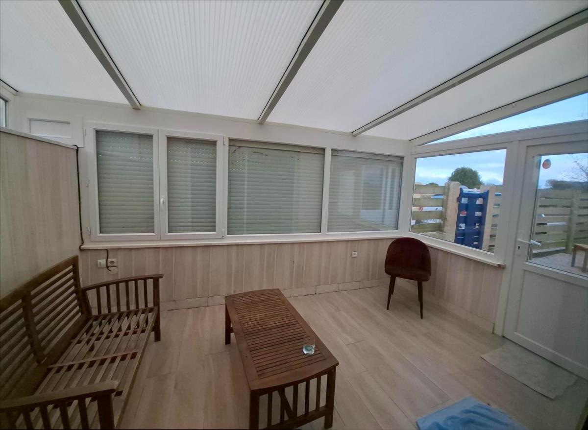Petite courette-terrasse devant et sur le côté.Surface habitable : 70 m² hors véranda. Chauffage et production d'eau chaude par pompe à chaleur (aérothermie).Travaux de rénovation importants effectués en 2020.