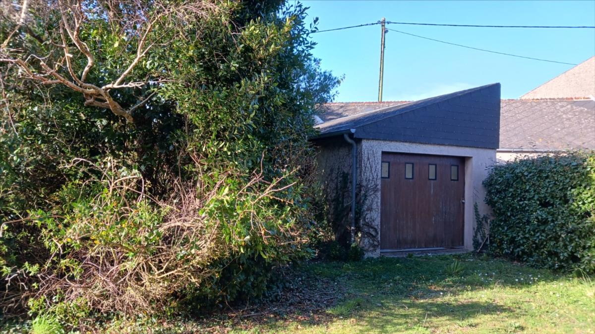 Jardin devant sur lequel un garage-atelier.