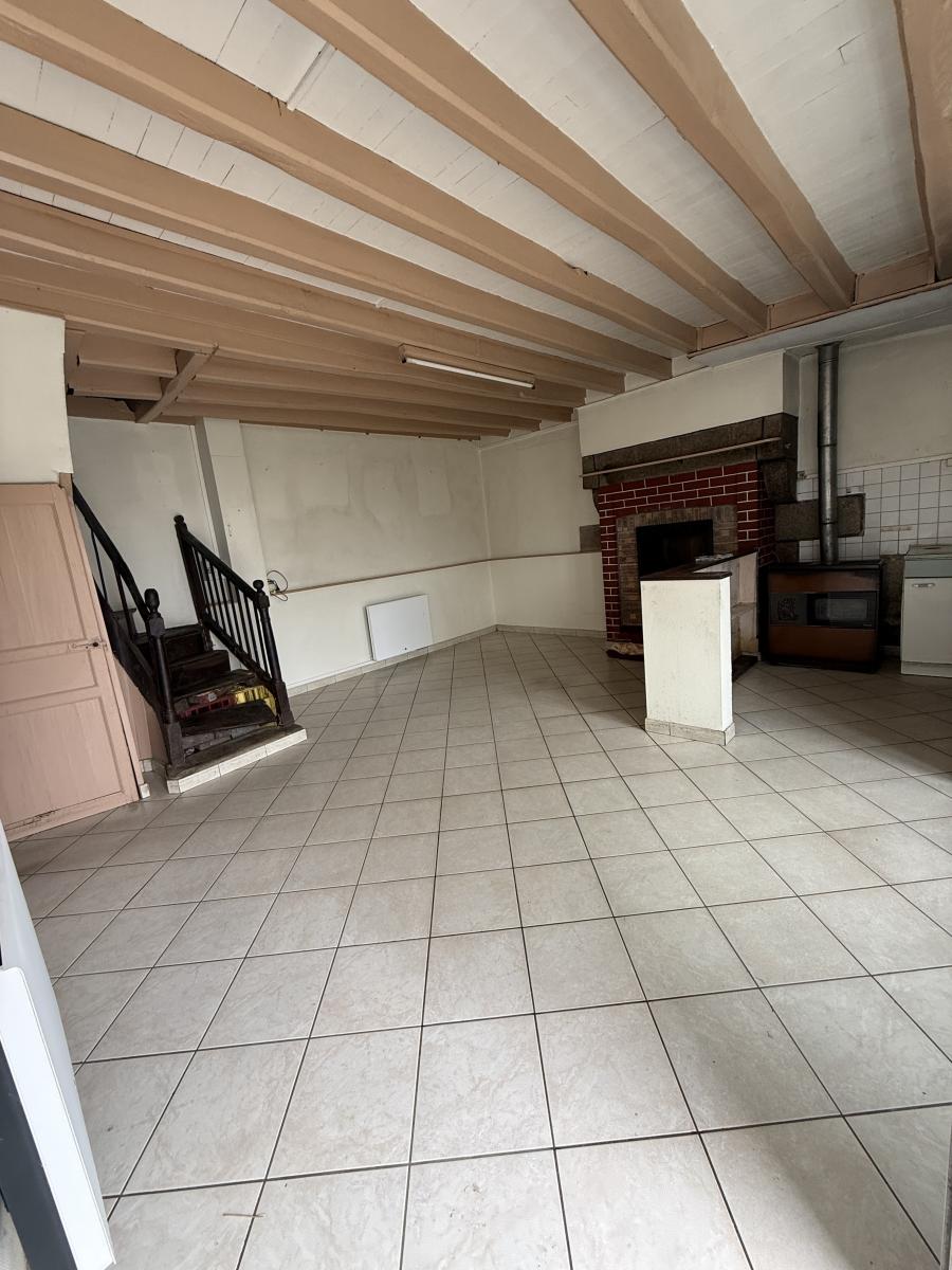 - Au rez de chaussée, pièce de vie avec espace cuisine simple, cheminée insert, un salon, une arrière cuisine, un WC.