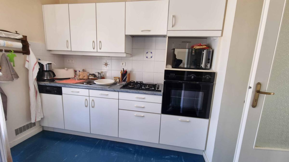 entrée, séjour/salon, cuisine aménagée et équipée, salle d'eau avec wc, deux chambres.