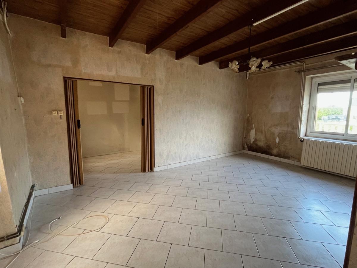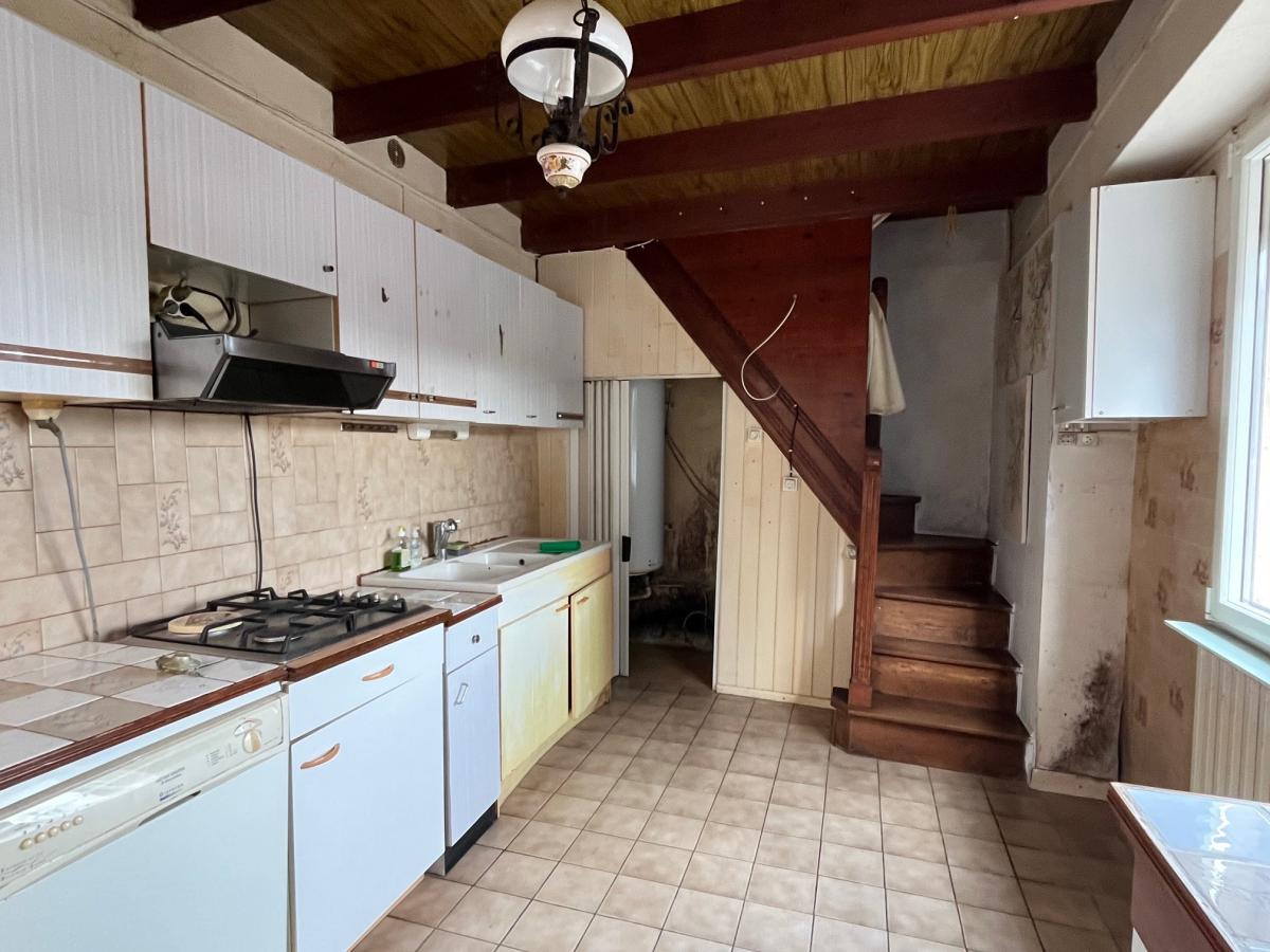 Une maison à rénover, d'une surface habitable d'environ 108 m², comprenant : cuisine, salle à manger, pièce à la suite, salle d'eau avec wc. A l'étage : 3 chambres, autre pièce. Véranda, appentis, atelier, cave, garage, wc. Cour et jardin, cabanon de jardin. Le tout sur un terrain 1115 m². Honoraires de négociation à charge vendeur