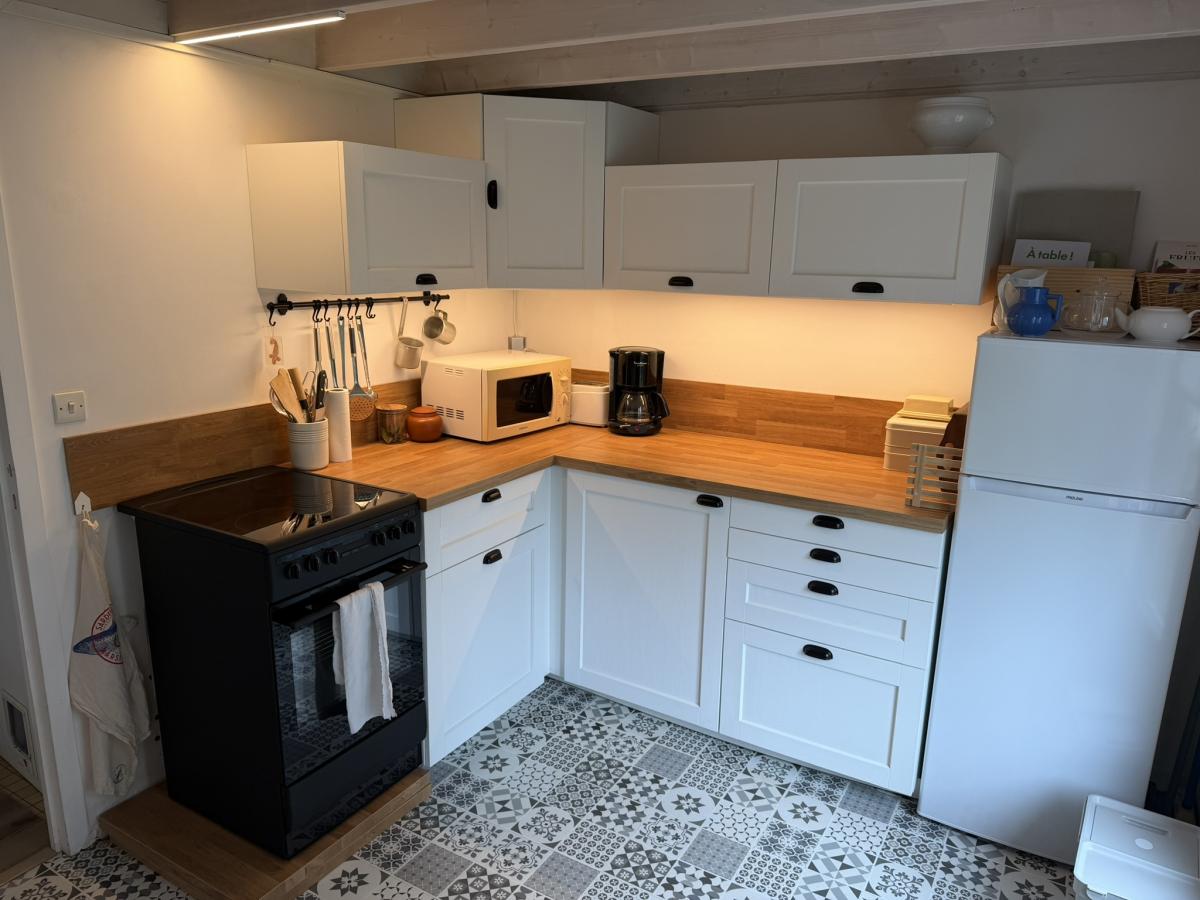 - Au rez de chaussée: séjour avec cheminée-insert, cuisine ouverte équipée, salle d'eau, WC.