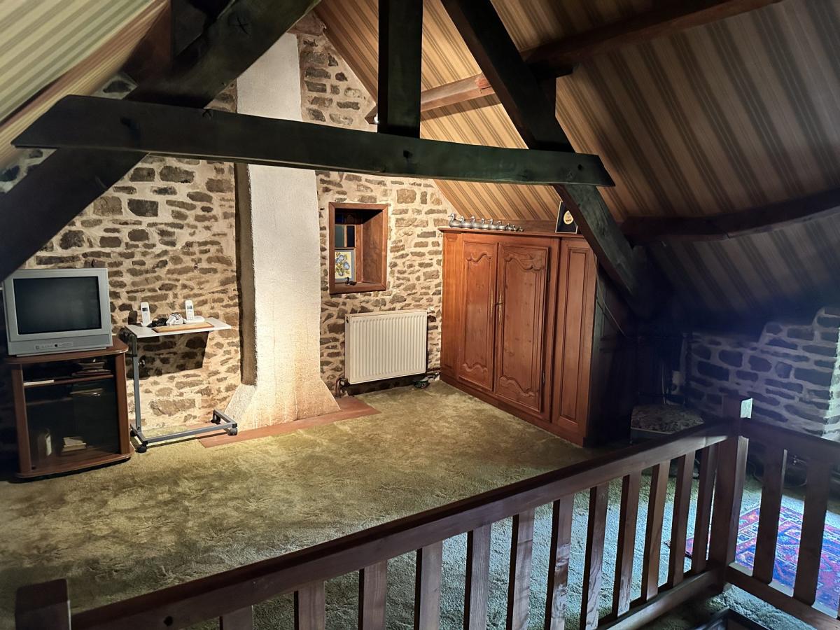 - A l'étage: très grande chambre avec salle d'eau et WC privatifs, et par un second escalier une chambre en mezzanine donnant accès à une autre grande chambre.