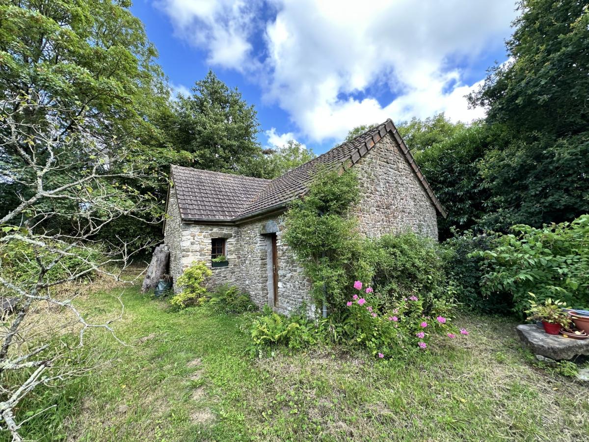 Jardin bordé d'une rivière, planté et arboré avec terrasse et dépendance comprenant une buanderie avec grenier au dessus et un garage.