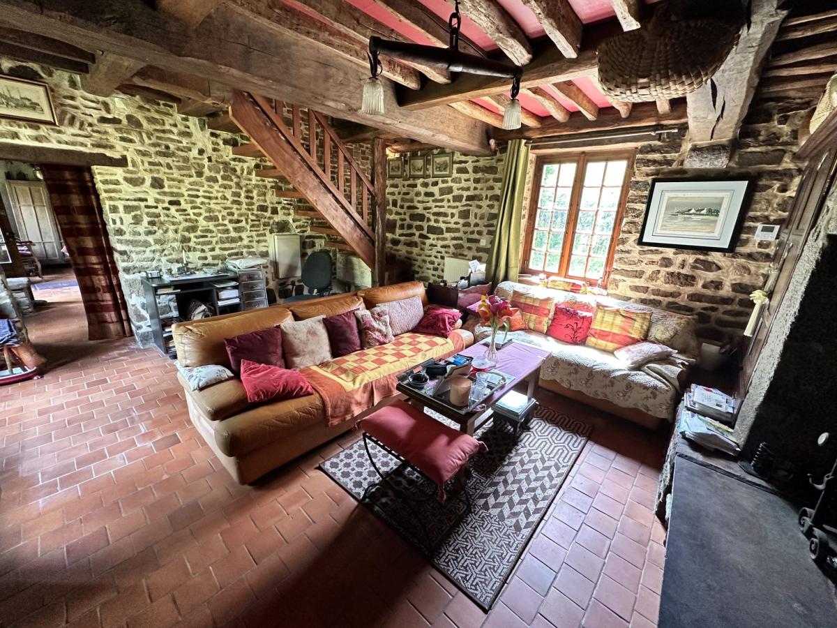 - Au rez de chaussée: cuisine équipée, salle de bains avec WC, salon avec cheminée, grand séjour 50 m².