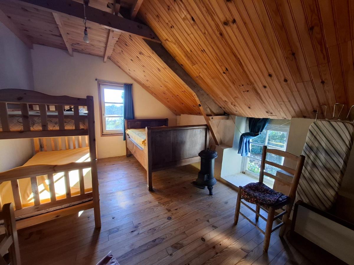 - au rez-de-chaussée : séjour avec cheminée foyer ouvert et poêle à bois, cellier, salle d'eau, toilette.