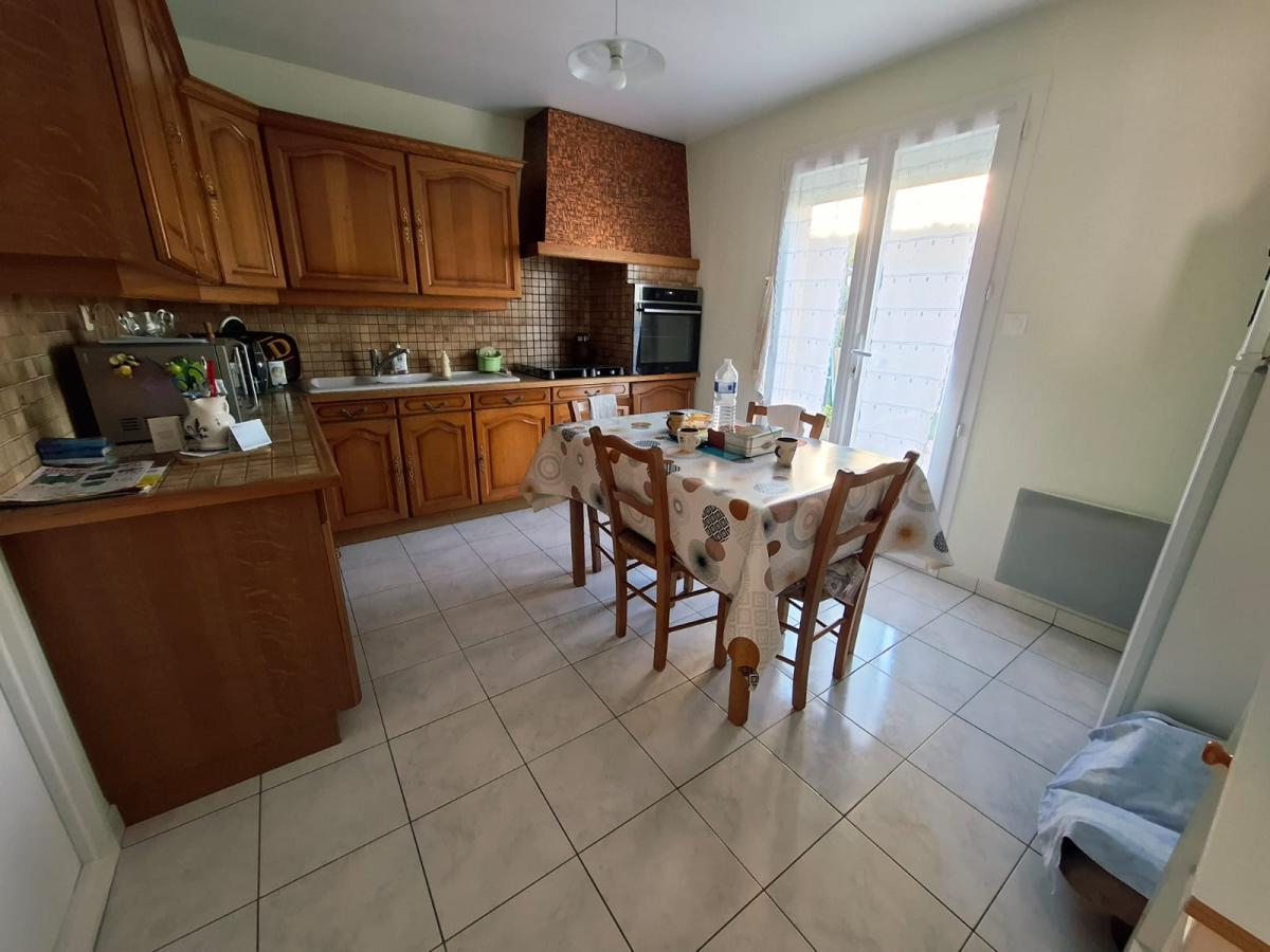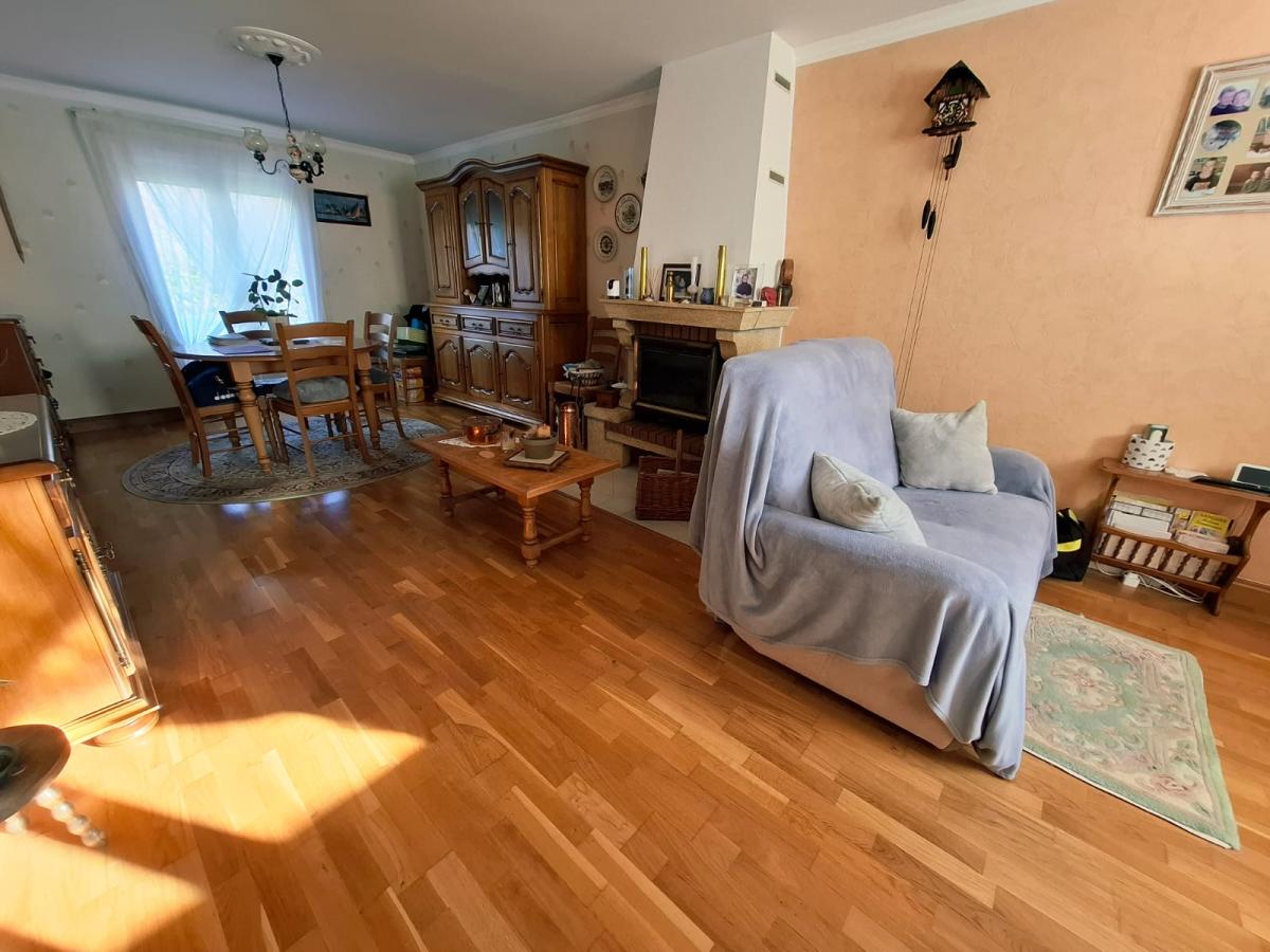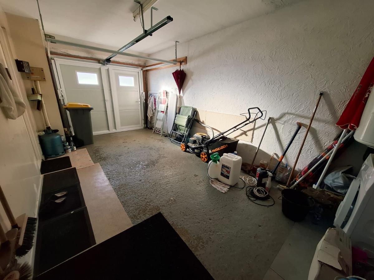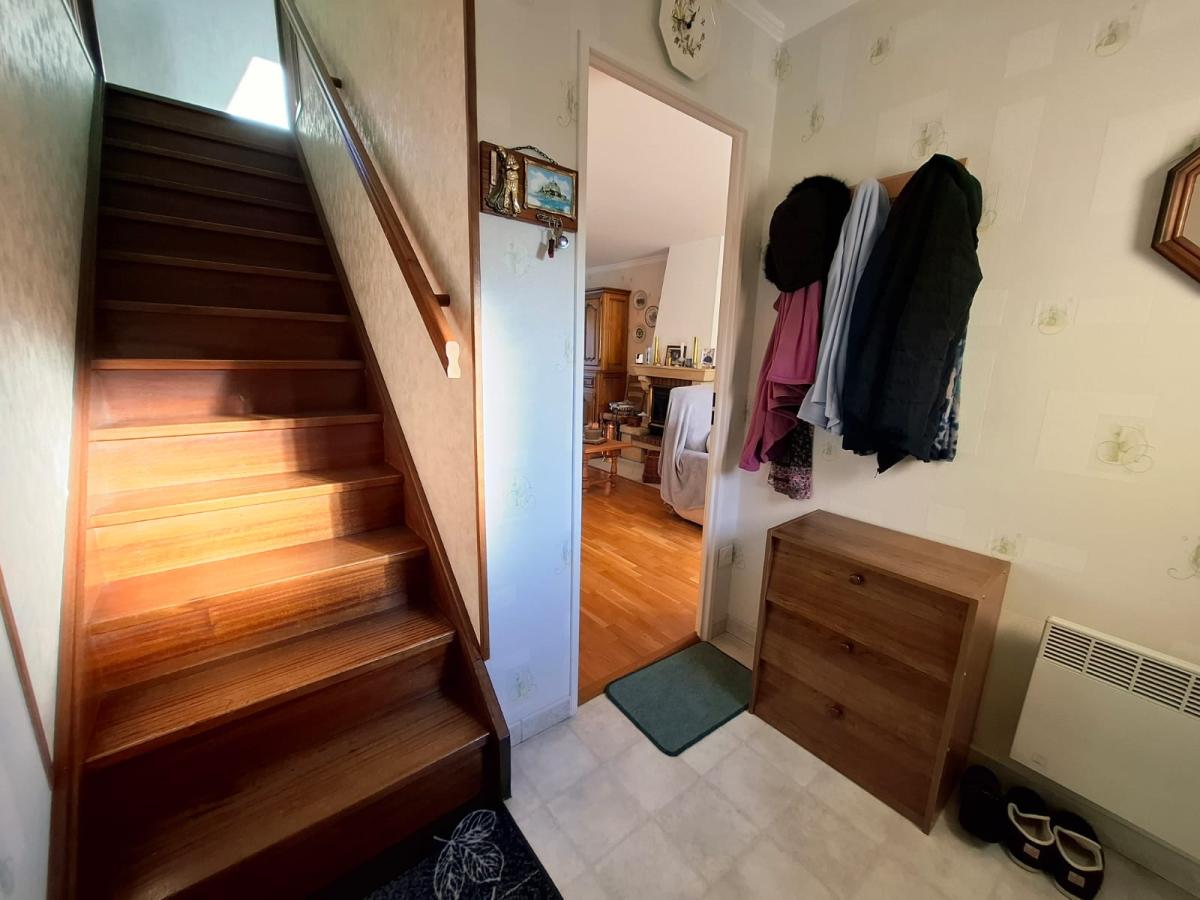 Au rez-de-chaussée : entrée, toilette, séjour salon avec cheminée insert, cuisine aménagée, garage (avec accès cave en sous-sol).