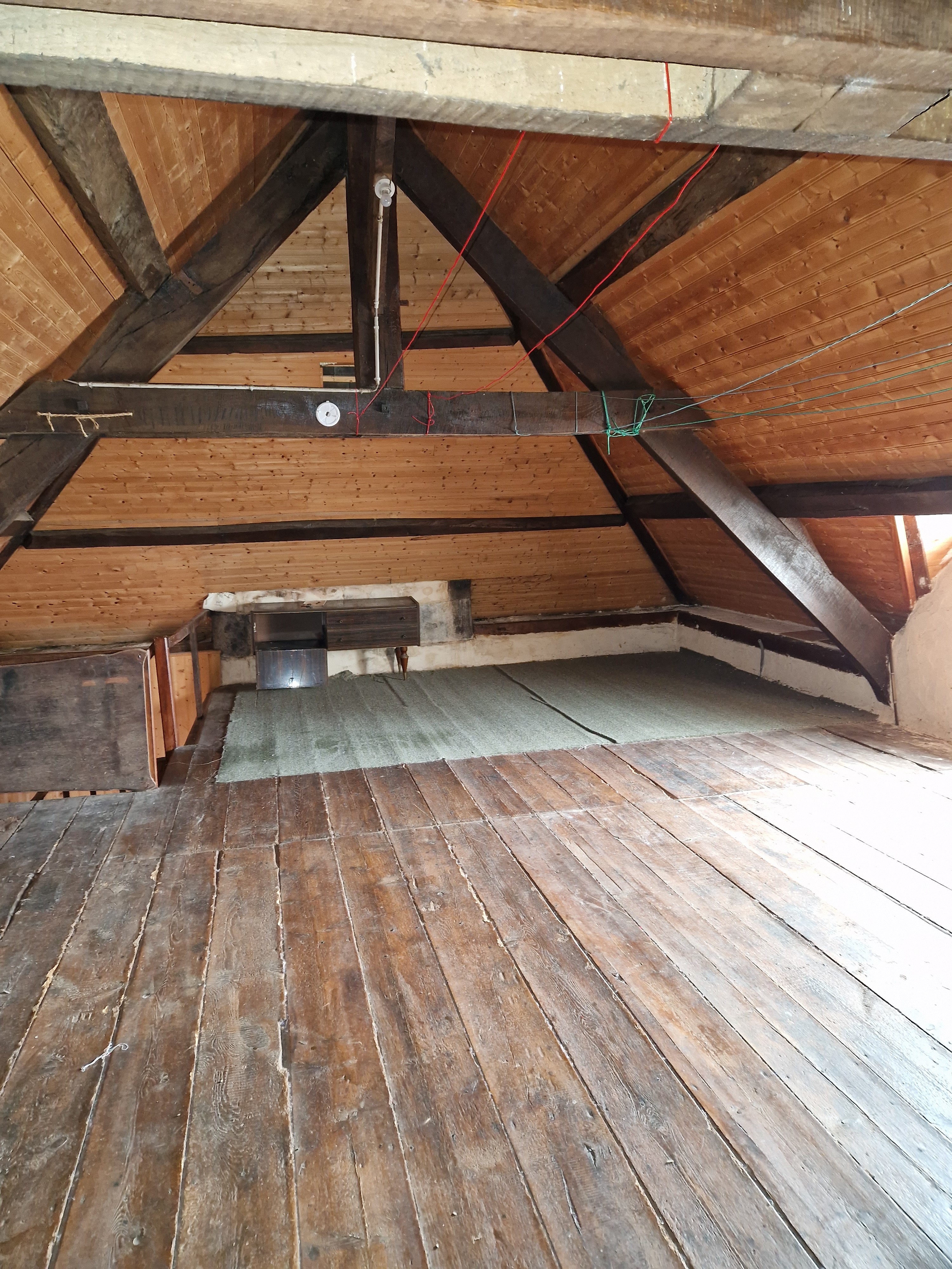 - rez-de-chaussée : véranda, pièce de vie avec cheminée insert, bureau, dégagement, WC,