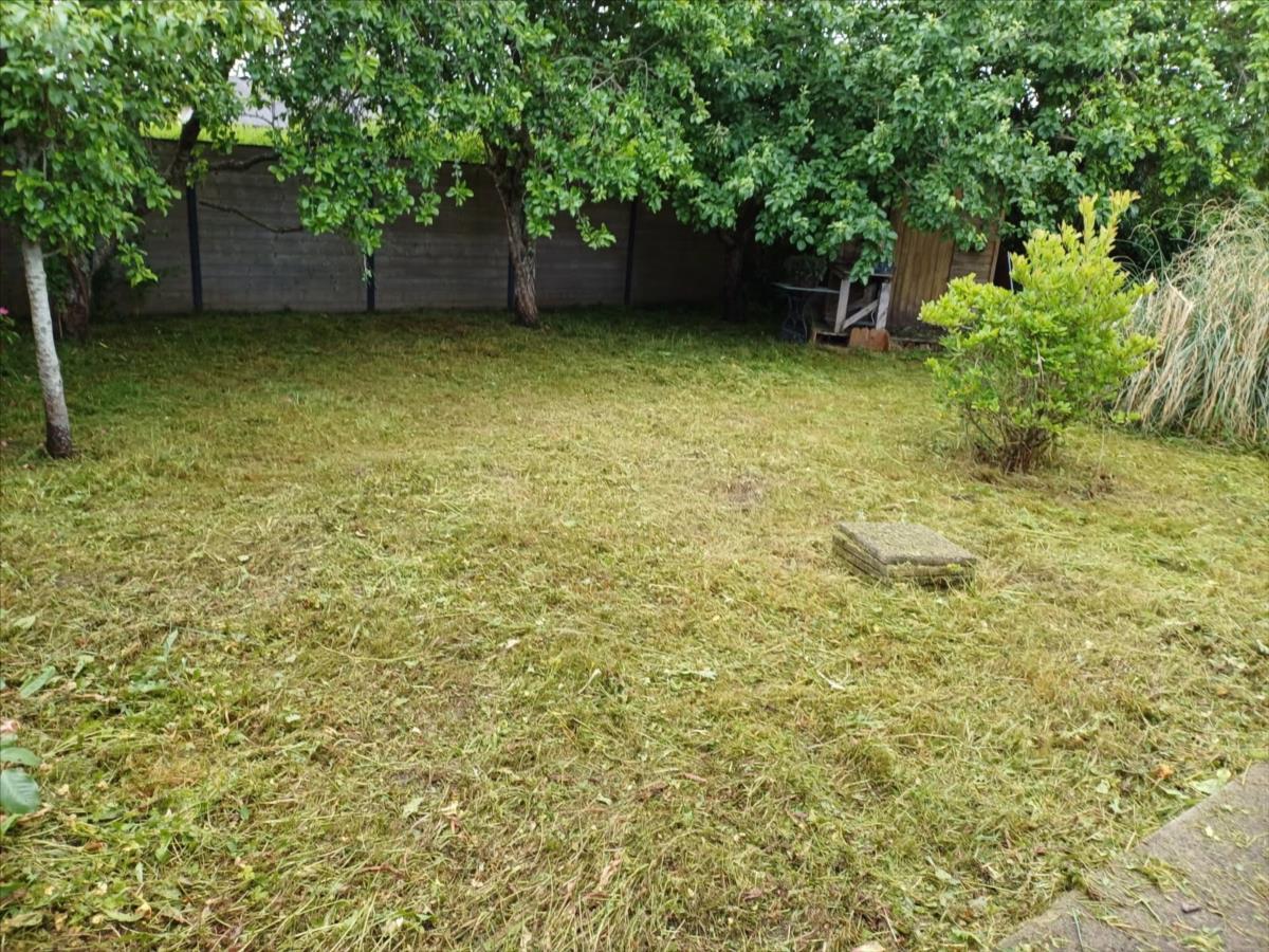 Maison d'habitation mitoyenne en préfabriqué recouverte de shingle comprenant: - entrée dans séjour-salon avec poêle à granulé, cuisine aménagée et équipée, 2 chambres, salle d'eau avec wc, cellier ainsi qu'un ancien garage fermé par une menuiserie vitrée.  Chauffage au granulés et convecteurs électrique Raccordée au tout à l'égout Jardin 469 m² avec abris de jardin en bois Les informations sur les risques auxquels ce bien est exposé sont disponibles sur le site Géorisques : www. georisques.gouv.fr.