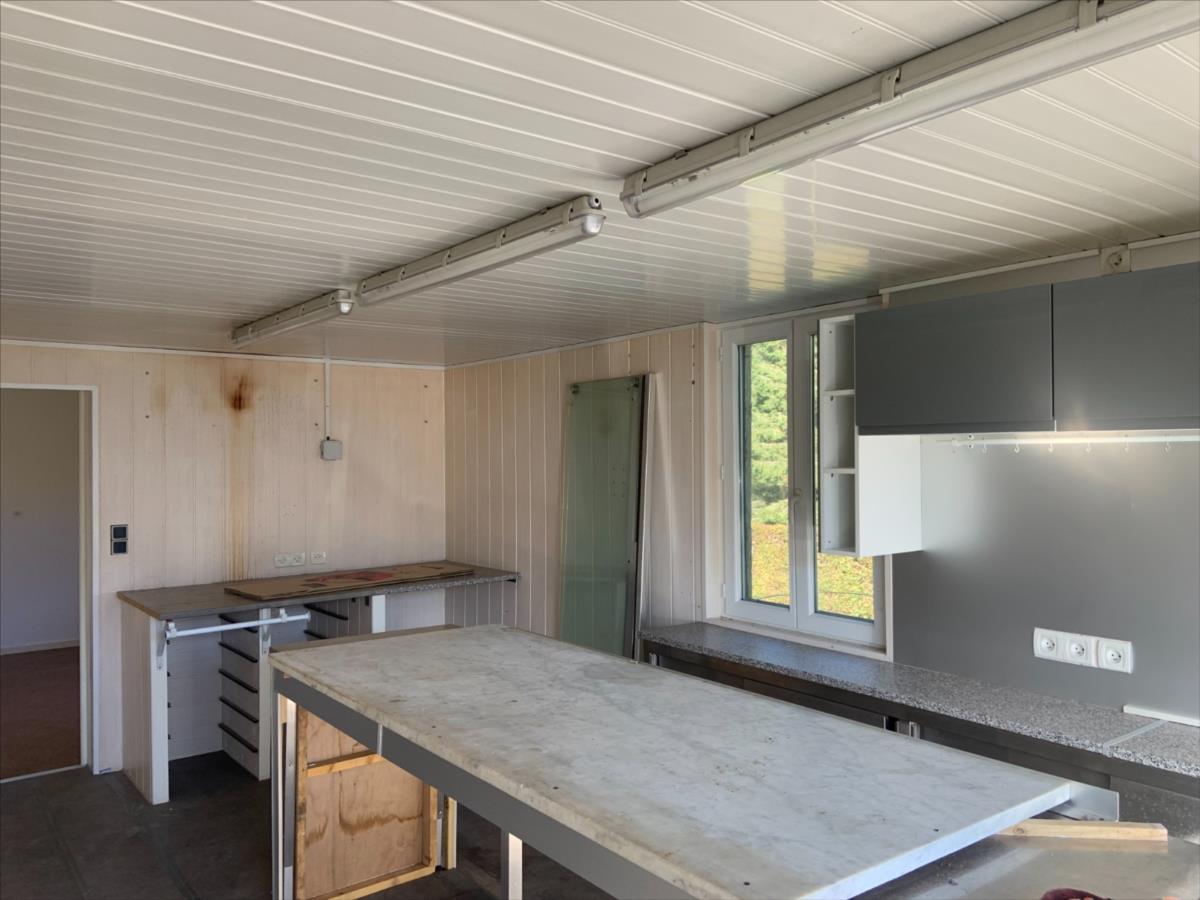 - au RDC: cuisine aménagée, arrière cuisine, séjour, salon, ancien laboratoire de cuisine avec autre pièce de rangement, couloir, 2 chambres, bureau, dressing, salle d'eau-wc