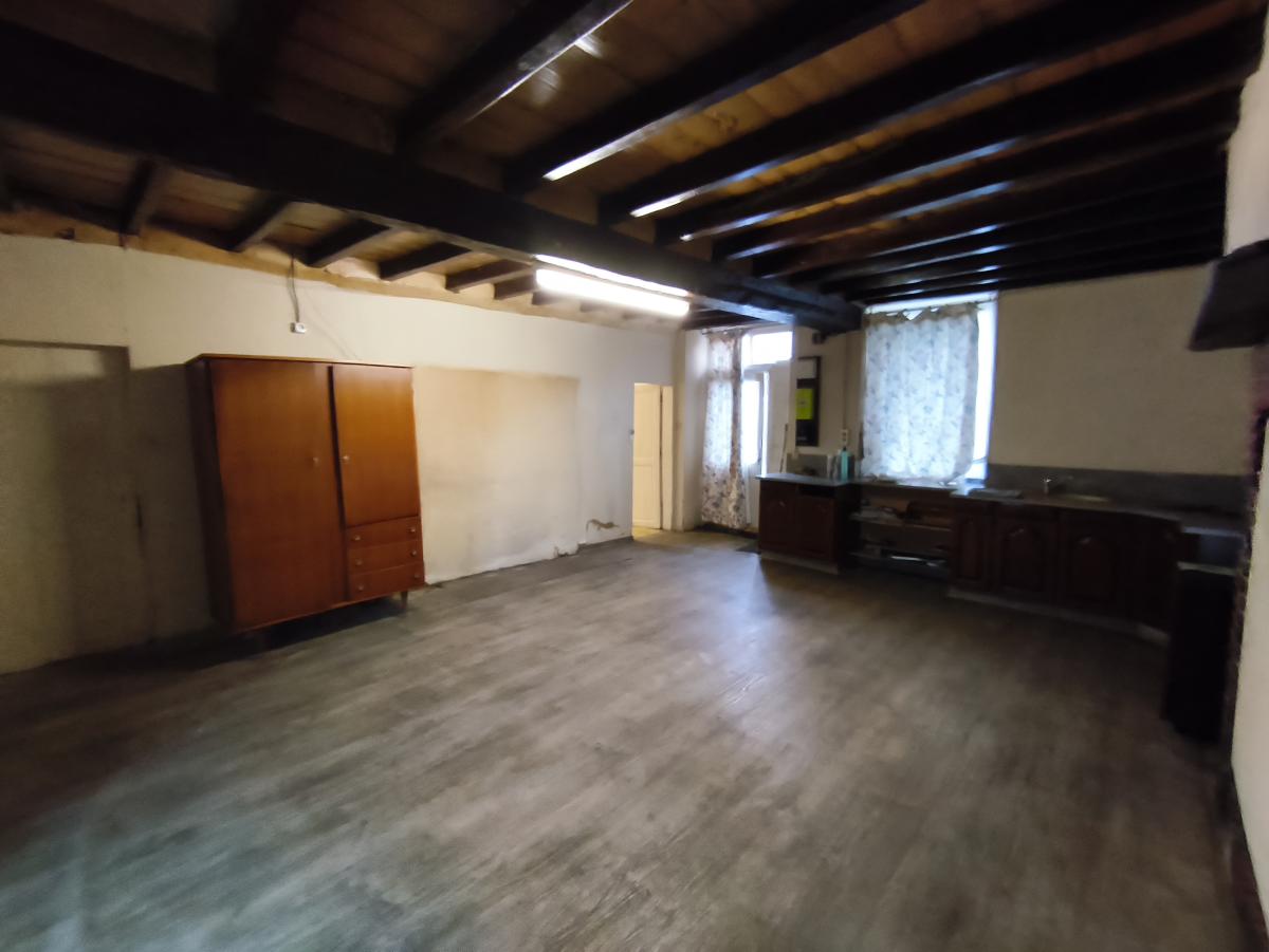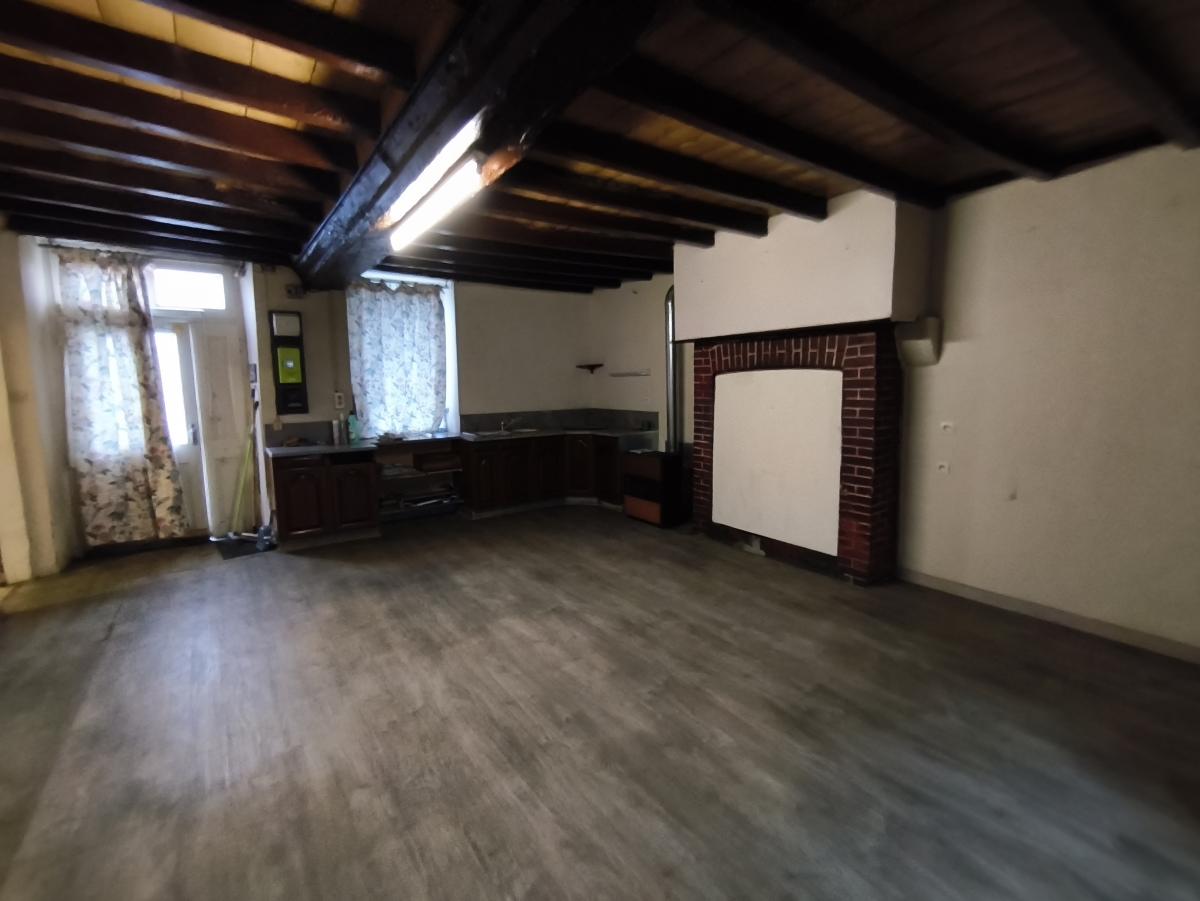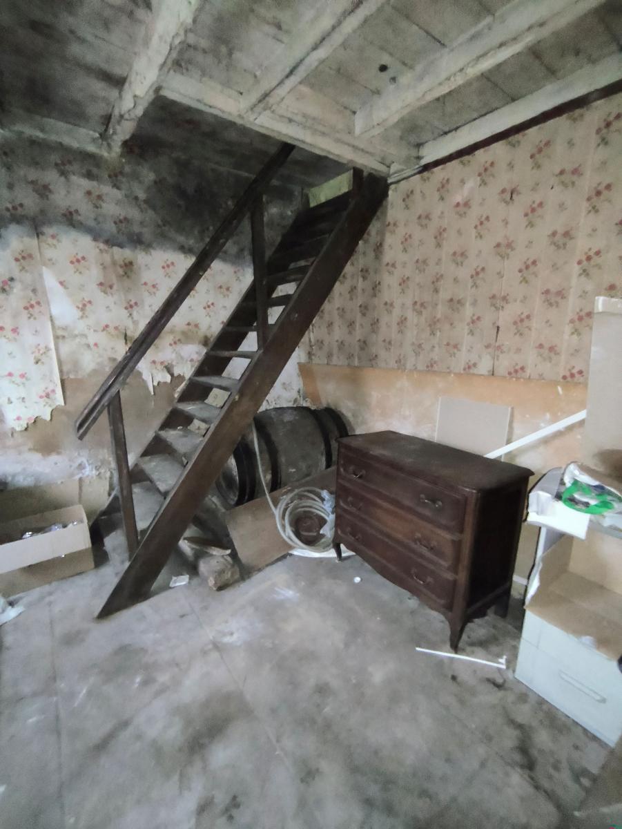 Le rez-de-chaussée est composé d'un séjour-cuisine avec poêle à fioul, une pièce, une chambre.