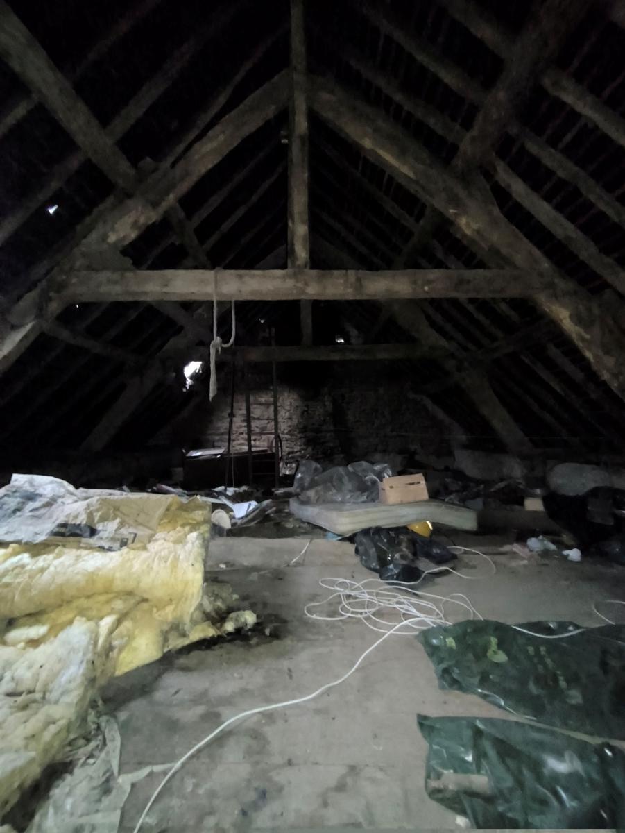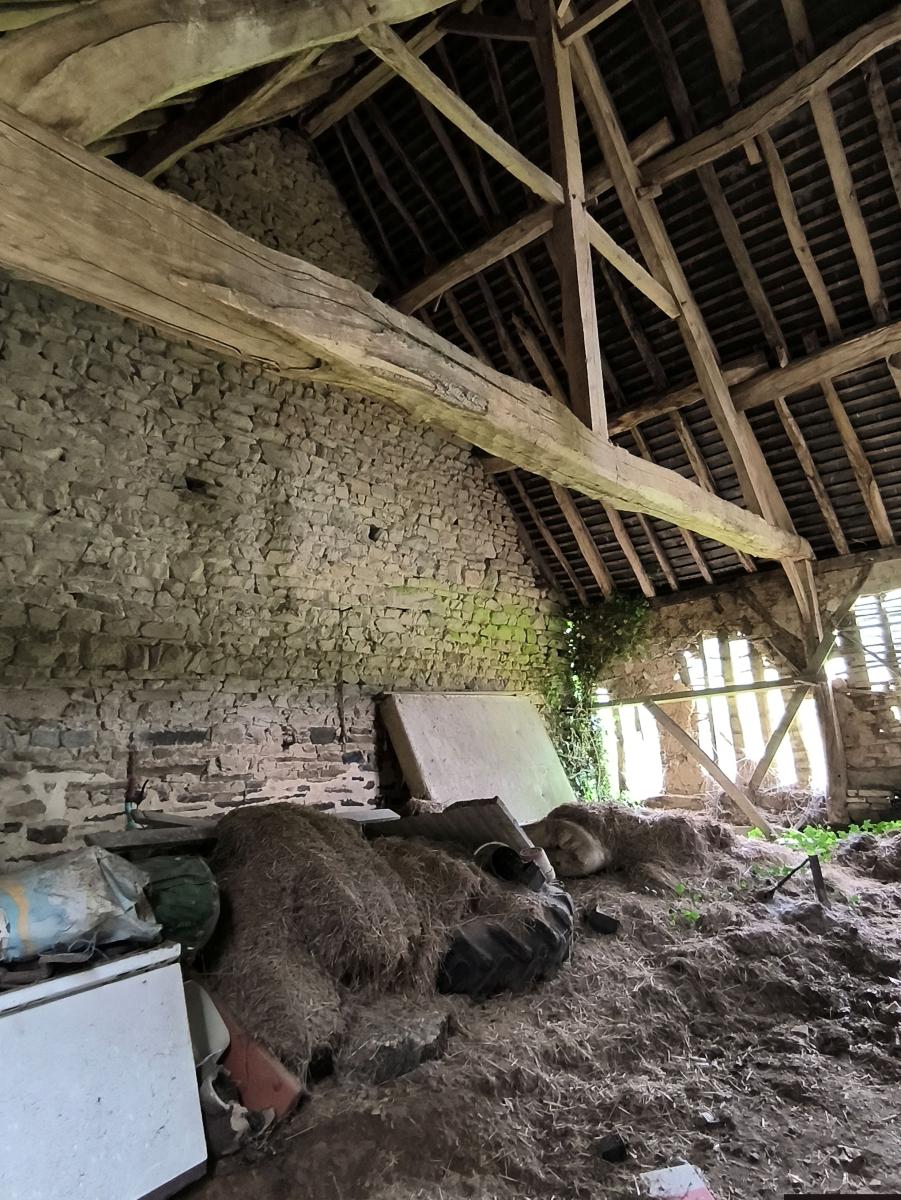 L'ensemble à rénover, y compris la couverture, sur env. 1ha 94a, (terrain agricole actuellement loué, possibilité libre à la vente).