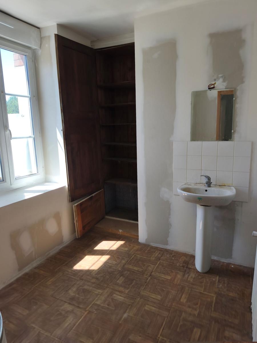 Maison de bourg de 3 pièces principales. Le rez-de-chaussée est composé d'un séjour avec cuisine, dégagement, wc. Le 1er étage : palier, une chambre, salle d'eau, wc. Au 2ème étage : palier, une pièce et grenier. Chauffage central fuel. DPE : F.