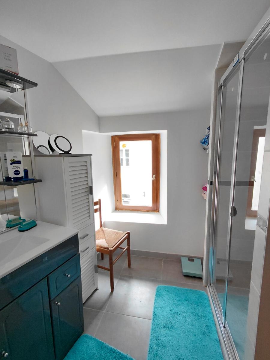 Vous apprécierez un spacieux salon séjour, une cuisine aménagée indépendante donnant sur sur la cour, ainsi qu’une salle de douche avec WC.