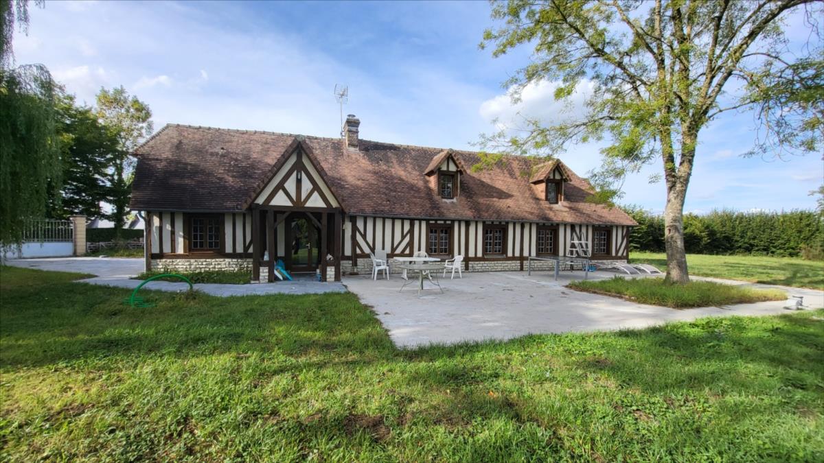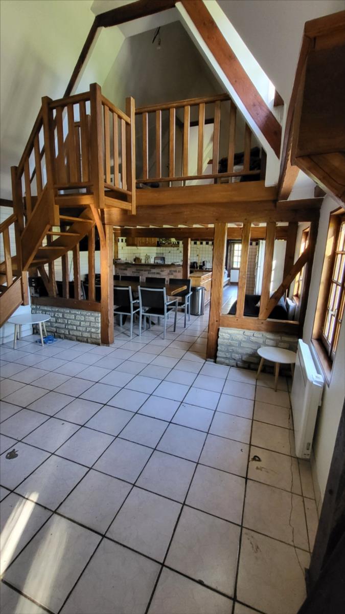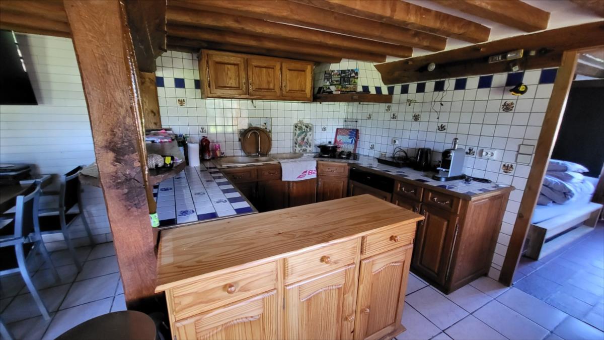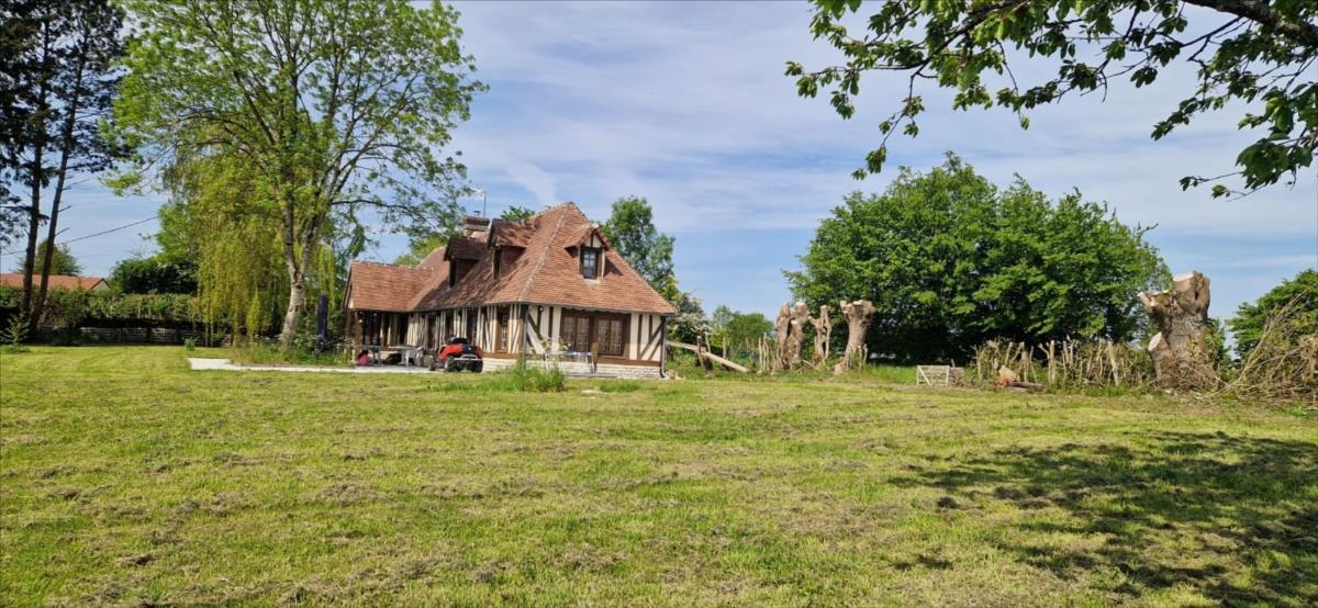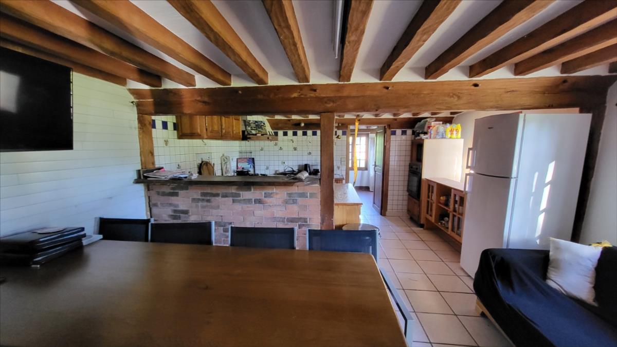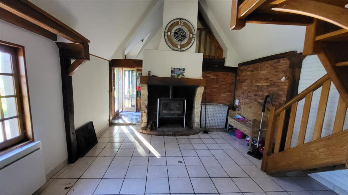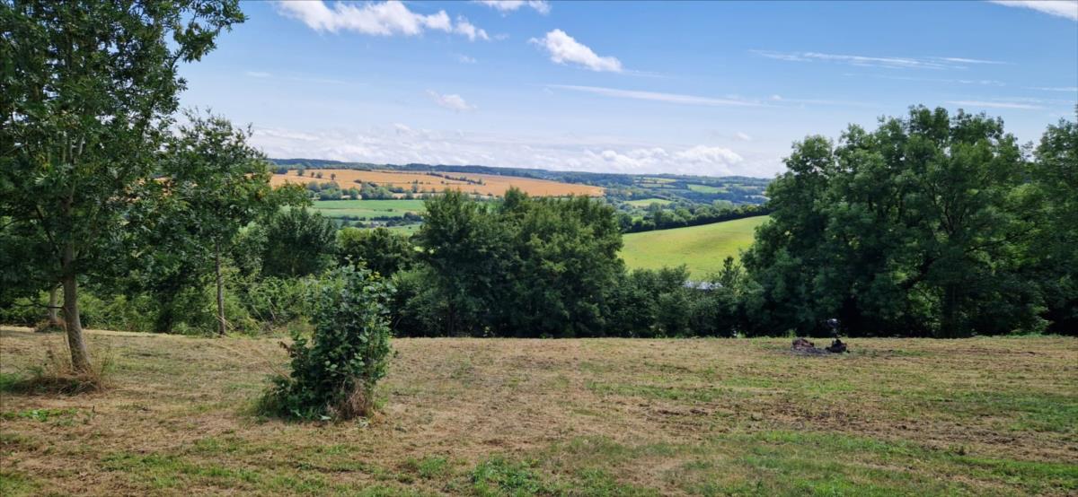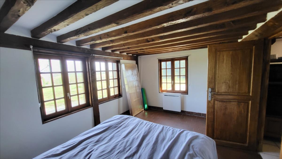 Propriété en campagne sur 1ha42 avec très belle vue vallonnée au calme - maison d'habitation en colombage comprenant entrée, séjour avec cheminée équipée d'un poêle avec partie en toit cathédrale et avec cuisine aménagée, une chambre, un bureau-chambre, salle de bains, wc séparés ; à l'étage : mezzanine-chambre, et deux chambres mansardées.Chauffage par poêle à bois et radiateurs électriques, le tout sur un terrain avec très belle vue et dépendance en colombage et parpaing de trois pièces dont une avec cheminée.