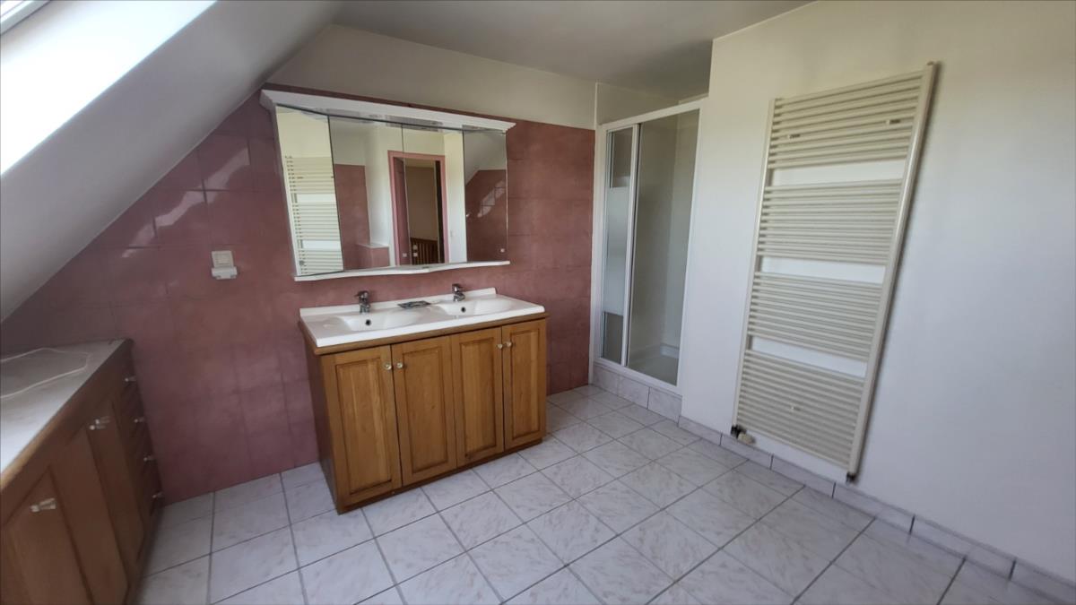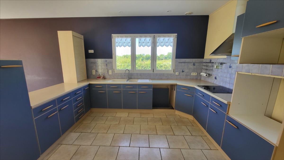 Dans un quartier au calme, et proche de quelques commerces, belle maison d'environ 135 m² bien entretenue comprenant : belle entrée avec escalier, séjour avec cheminée équipée d'un insert ouvert sur cuisine aménagée et équipée (réfrigérateur, hotte aspirante, plaque de cuisson), une chambre avec salle de douche à l'italienne, wc séparés, bureau ou chambre avec placards ; à l'étage : pièce-mezzanine surplombant l'entrée, trois chambres, wc séparés, grande salle de bains avec baignoire et douche), placards et radiateurs sèche serviettes ; chauffage au fioul + cheminée ; Volets roulants; sous-sol complet avec adoucisseur d'eau comprenant buanderie avec point d'eau, garage, cave à vin l'ensemble sur 1030 m² de jardin avec terrasse.