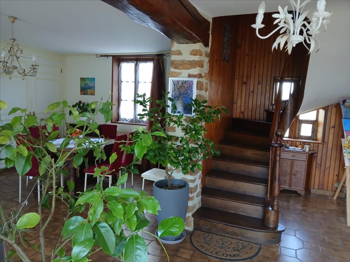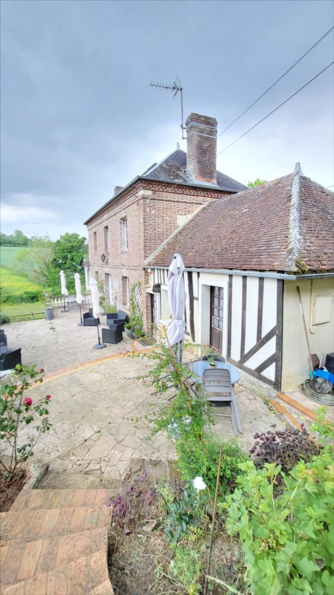 Maison en brique et colombage de 141 m² comprenant séjour avec deux cheminées, cuisine rustique aménagée et équipée, arrière cuisine-buanderie, salle de douche, wc séparés, une chambre avec vue sur la nature. Au 1er étage : palier desservant quatre chambres, salle de bains d'angle avec wc; au 2ème grenier aménageable. Chauffage par pompe à chaleur (2 ans) et chauffe-eau solaire. Gite à l'entrée de la propriété (sans à vis à vis avec la maison qui est en contrebas), rénové comprenant séjour ouvert sur coin cuisine, salle de bains avec baignoire d'angle et wc; à l'étage : deux belles chambres mansardées - Environnement très vallonné au grand calme. Partie verger à l'arrière de la maison; Terrain très arboré avec ruisseau en contrebas et petit étang.