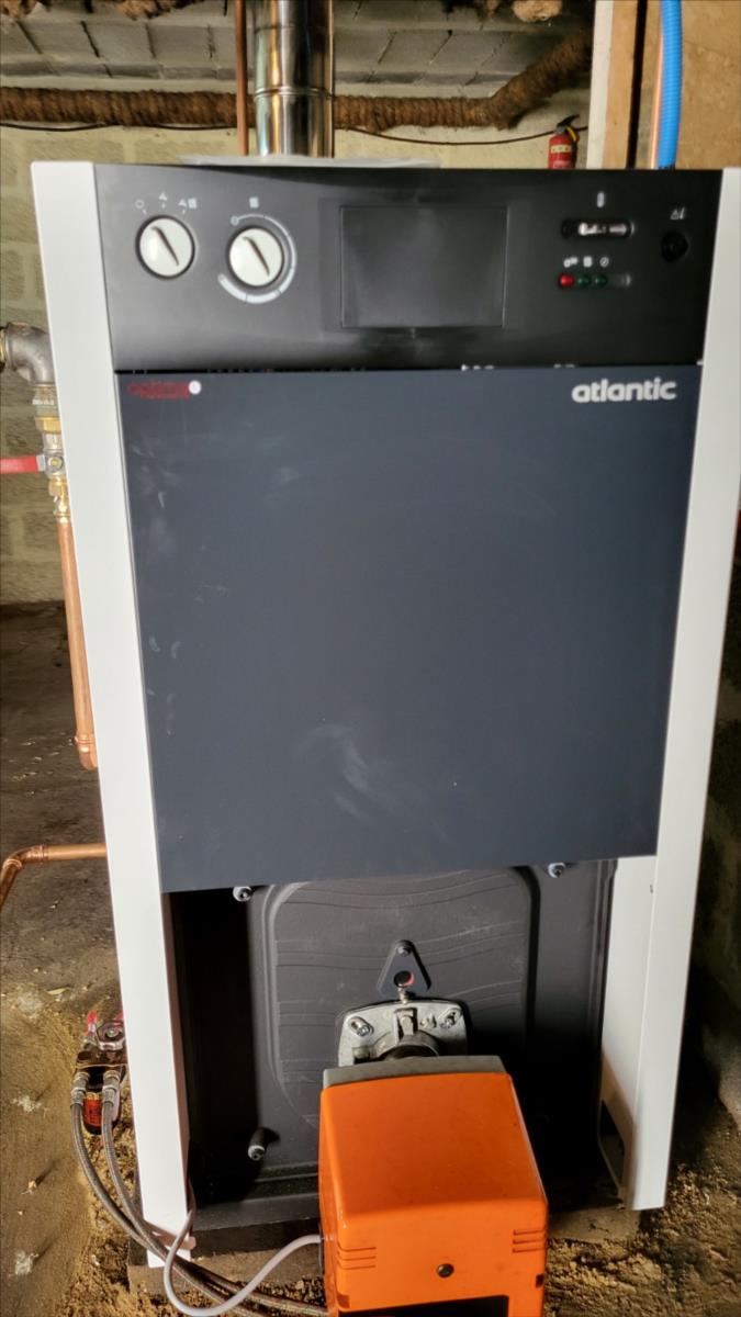 Pavillon surélevé comprenant en rez-de-jardin : garage avec chaufferie (chaudière très récente au fuel), buanderie, atelier, une pièce; au 1er étage : couloir avec placards desservant : séjour, cuisine, trois chambres, salle de douche, wc séparés; tout à l'égout. Volets roulants électriques. Chauffage central au fioul.