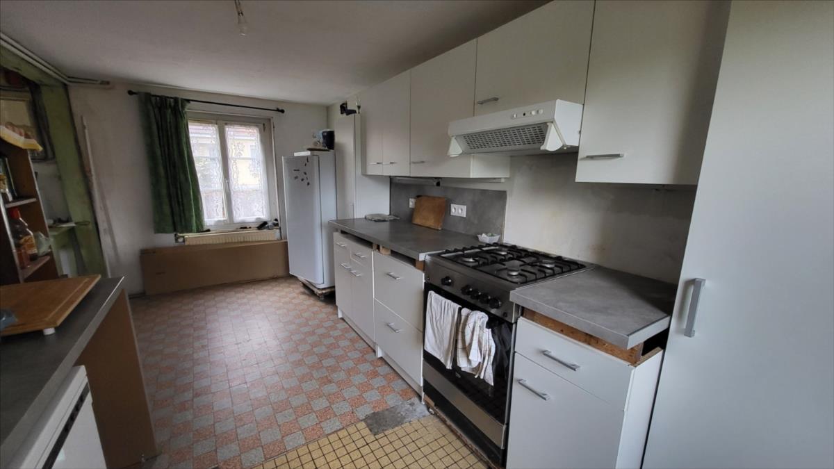 En sortie de petite ville avec commerces, dans un quartier au calme, maison comprenant : cuisine aménagée, séjour avec poêle à bois, dégagement, deux chambres, salle de douche avec douche à l'italienne, wc séparés ; à l'étage : petit palier desservant deux chambres mansardées et wc broyeur avec lave-mains. Belles dépendances en brique et pierre; garage.
