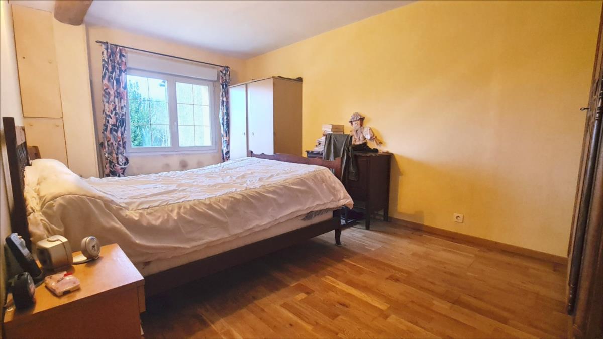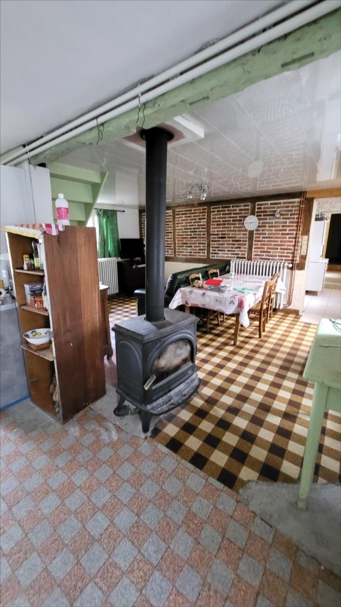 En sortie de petite ville avec commerces, dans un quartier au calme, maison comprenant : cuisine aménagée, séjour avec poêle à bois, dégagement, deux chambres, salle de douche avec douche à l'italienne, wc séparés ; à l'étage : petit palier desservant deux chambres mansardées et wc broyeur avec lave-mains. Belles dépendances en brique et pierre; garage.