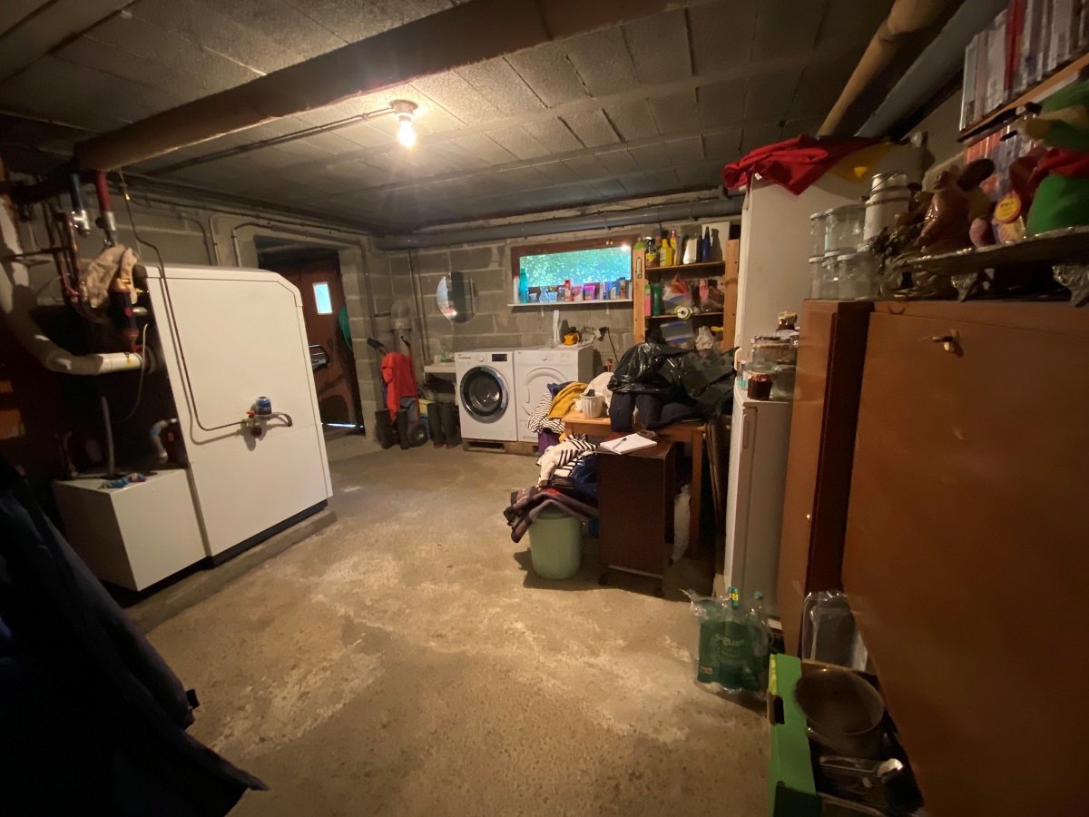 - chaufferie avec chaudière au fuel (remplacé il y a quatre ans) et emplacement pour lave-linge et sèche-linge, cave, garage pour deux voitures et atelier.