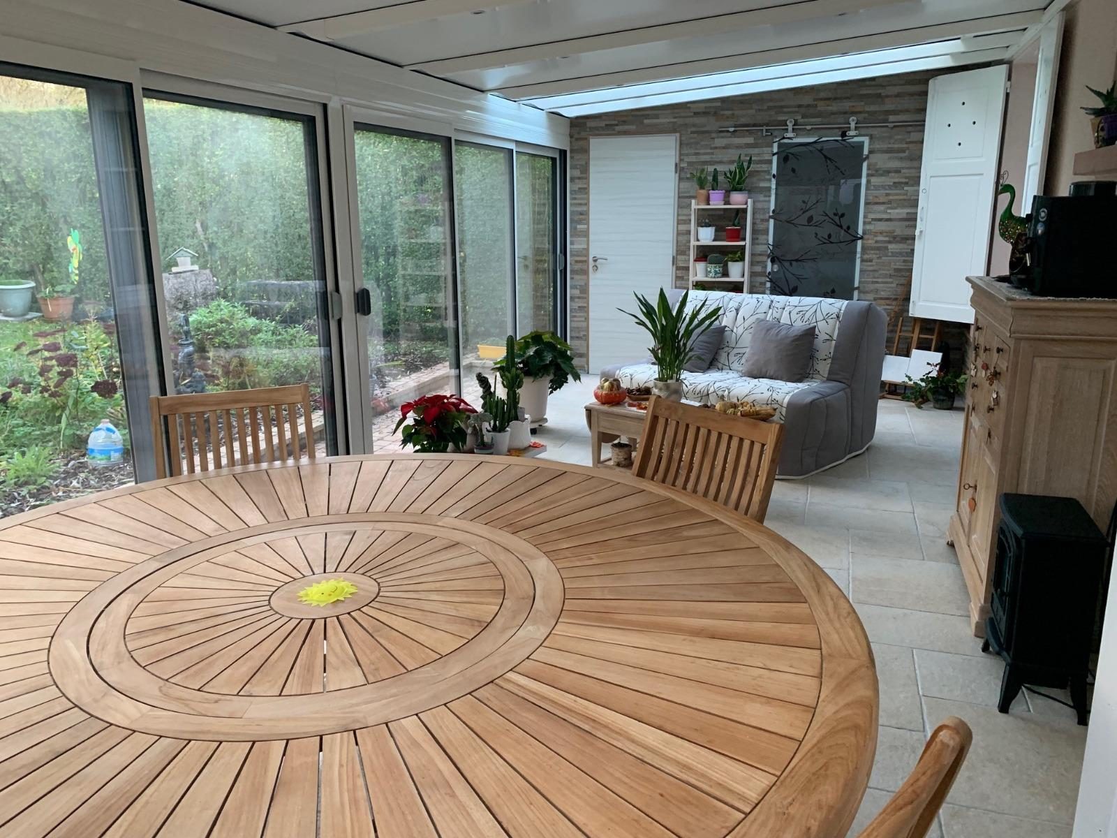 Entrée, séjour-salon, cuisine, véranda (neuve), 2 chambres, salle de bains, salle d'eau, wc.