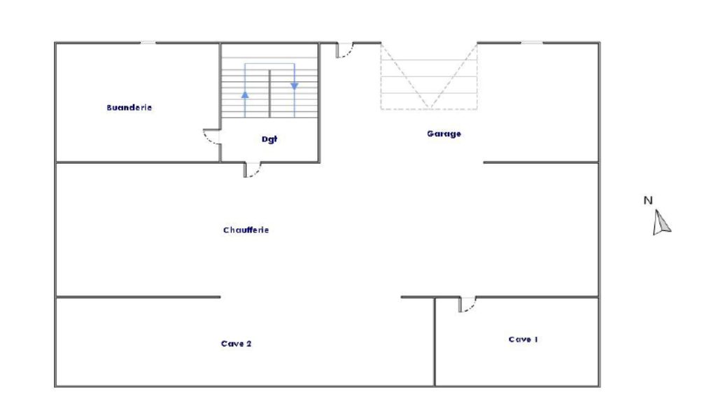 Sous-sol complet comprenant : buanderie, garage trois places, deux pièces borgnes et atelier.