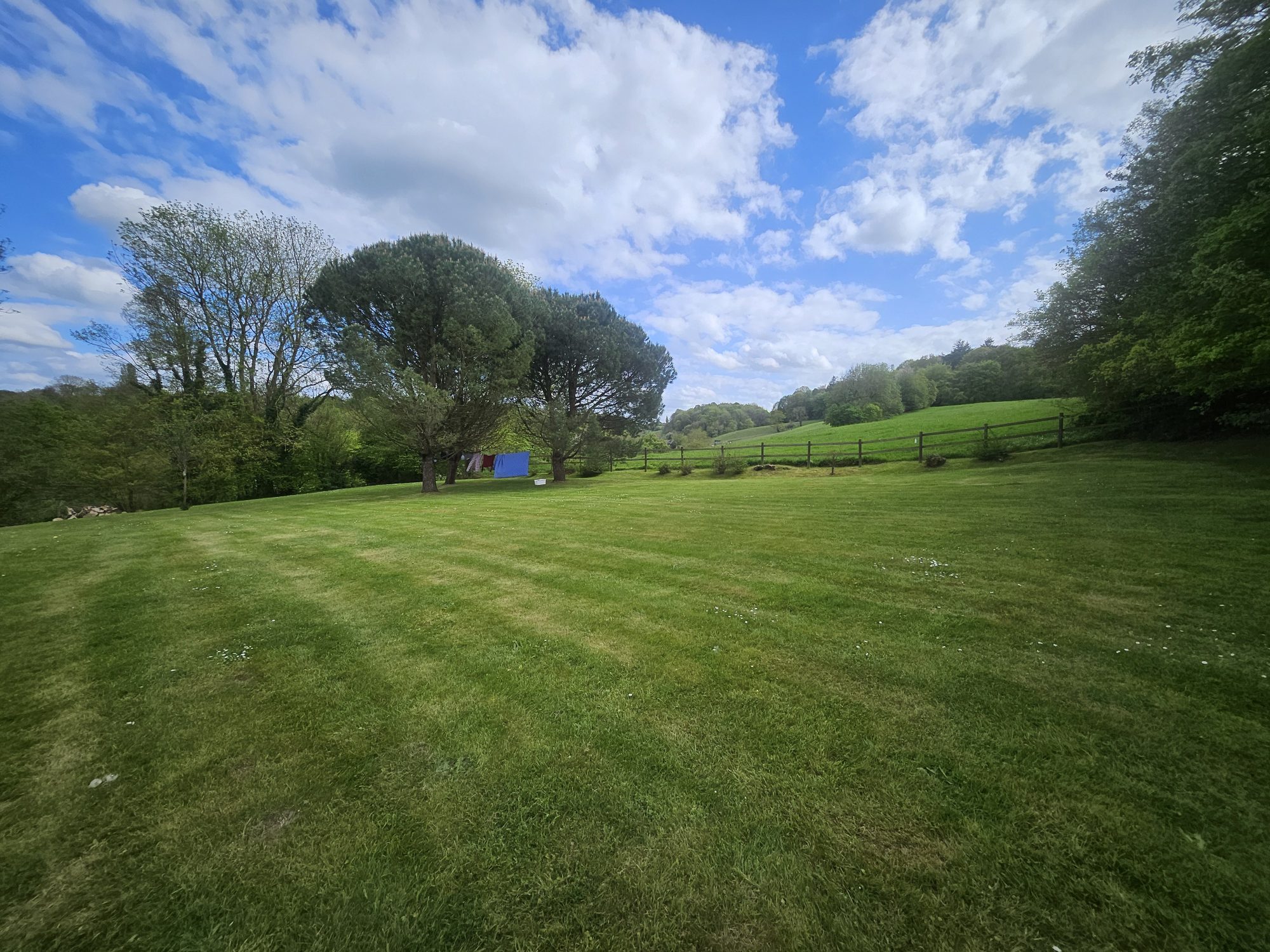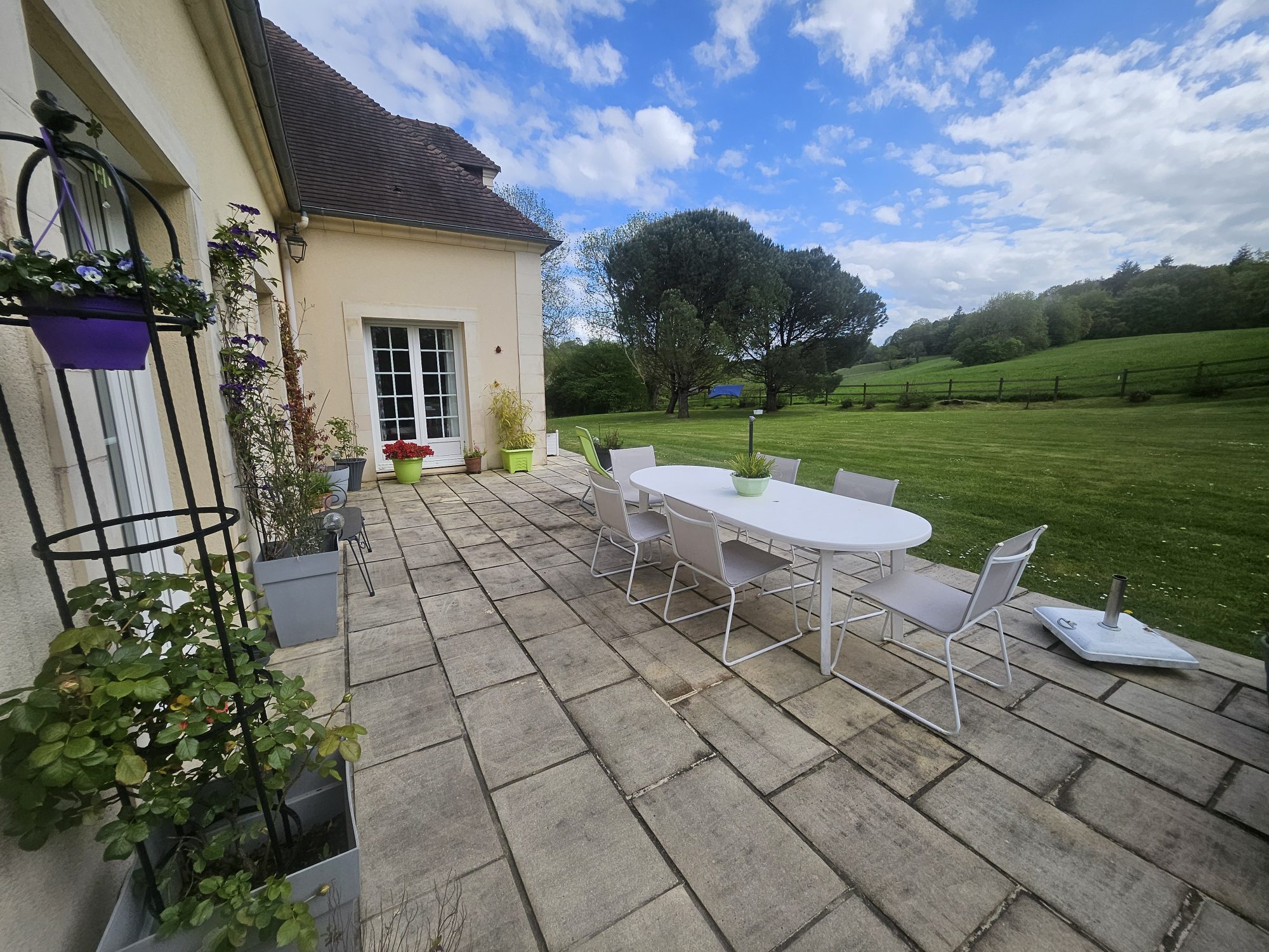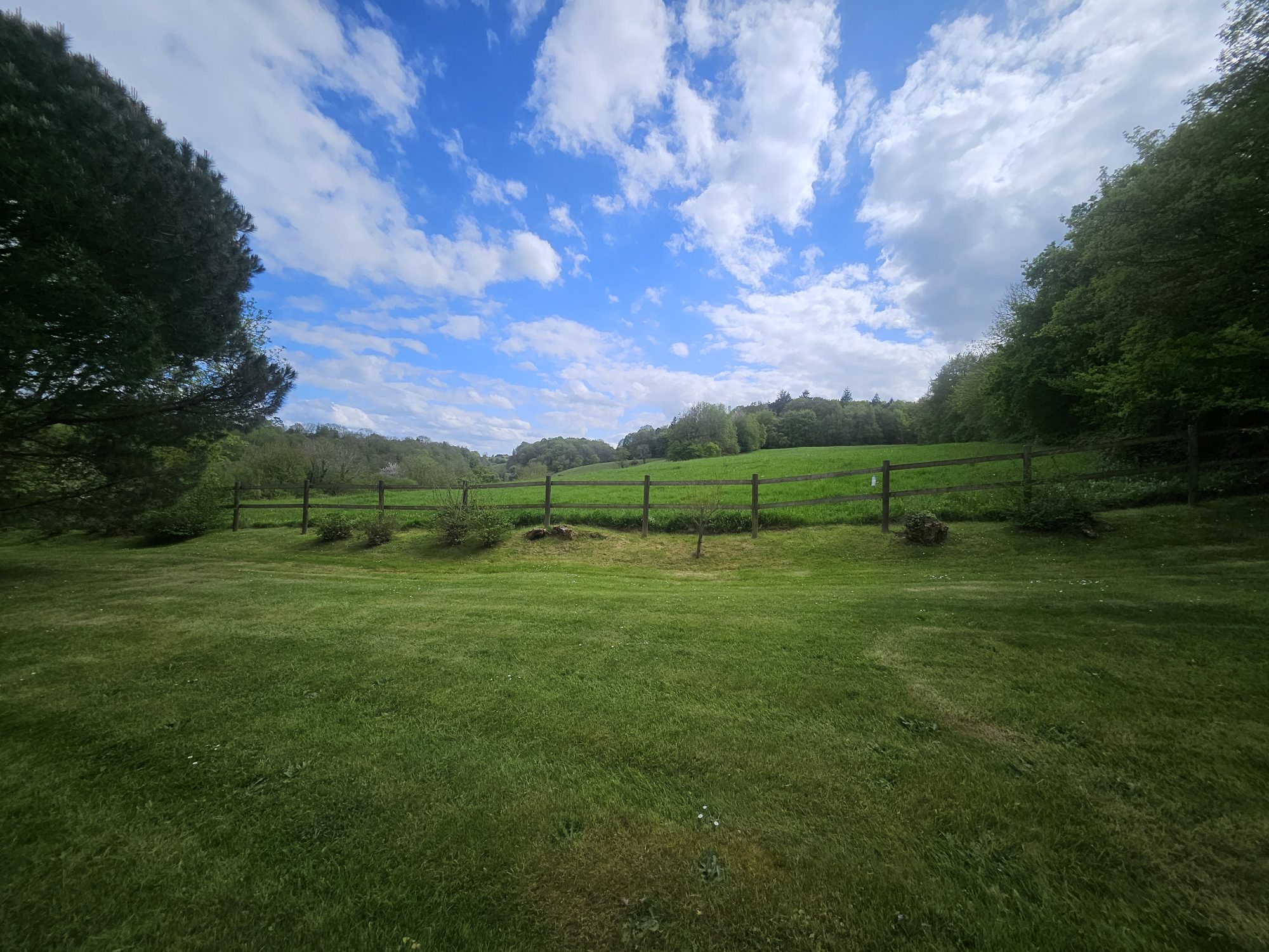 Sur 6 860 m² de terrain clos avec portail motorisé, vue sur les pâtures vallonnées, dans une impasse sans nuisance.