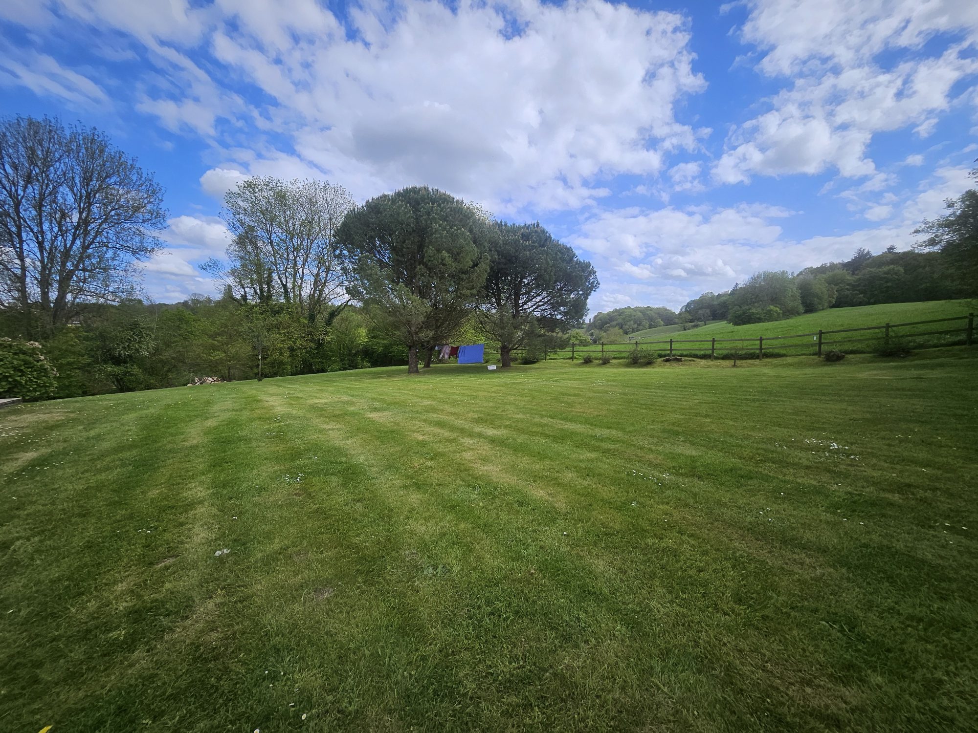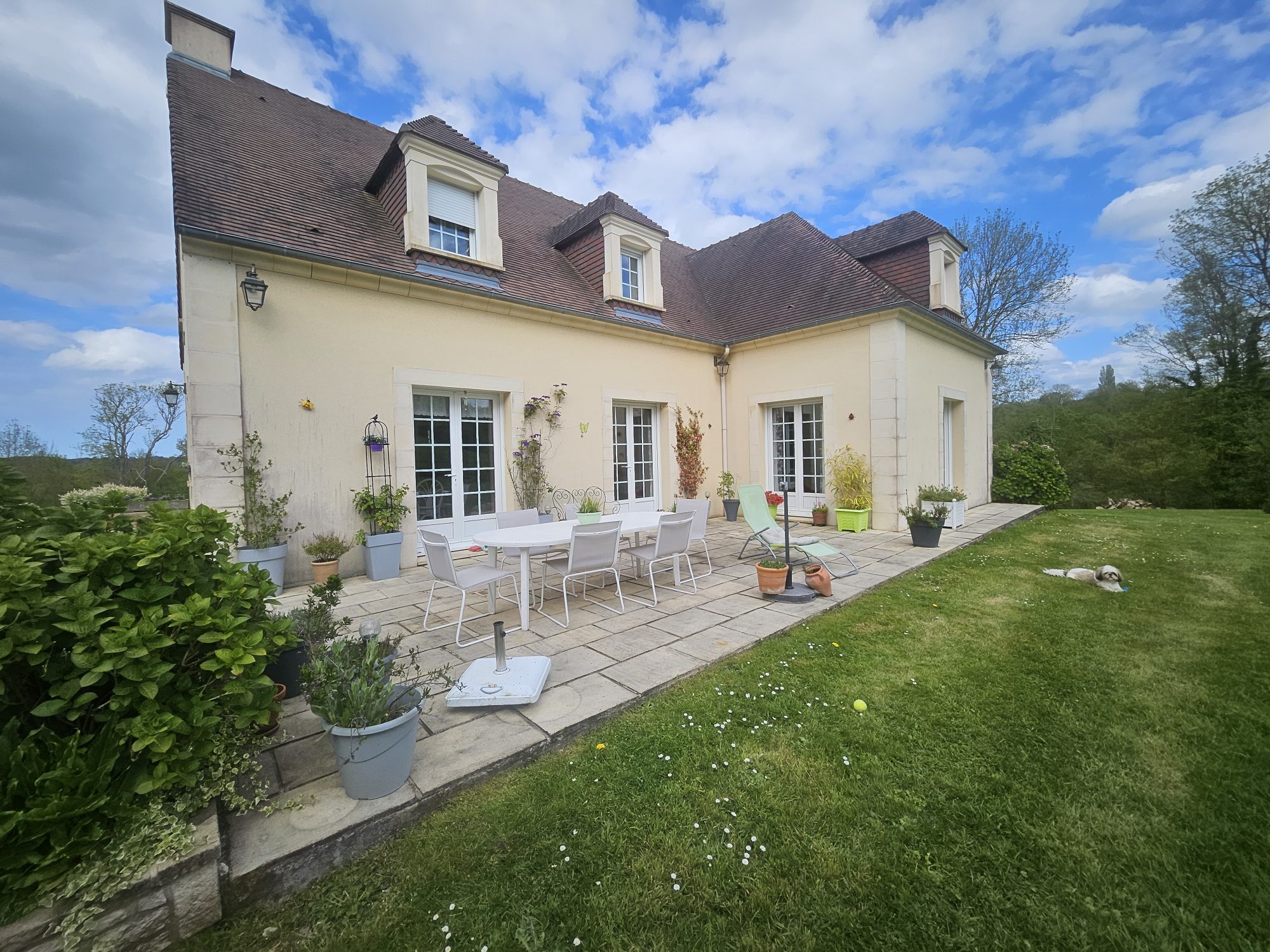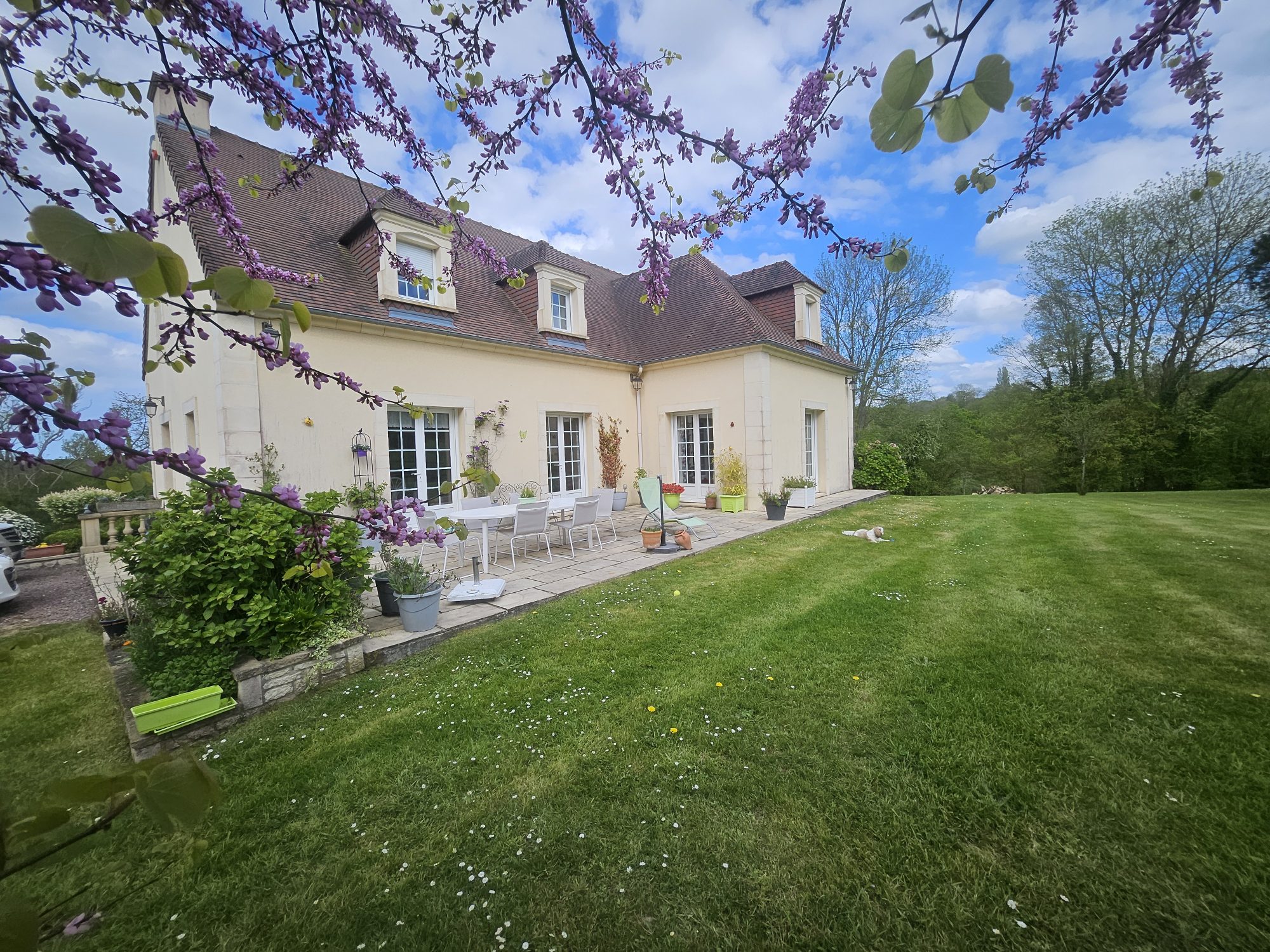 Sur 6 860 m² de terrain clos avec portail motorisé, vue sur les pâtures vallonnées, dans une impasse sans nuisance.