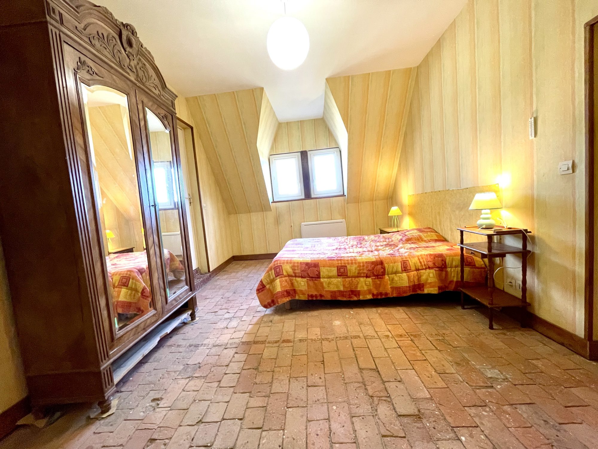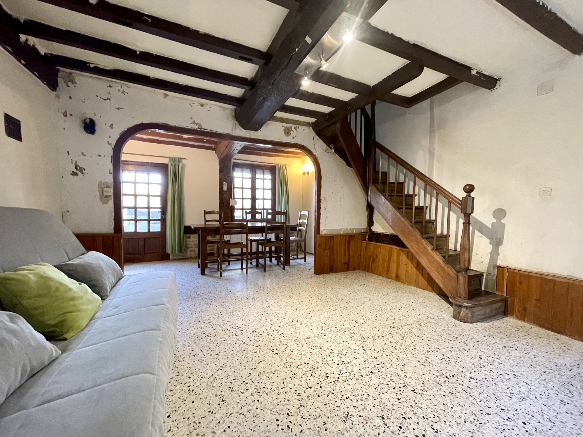 Dans bourg avec commerces . Au calme Maison normande avec potentiel comprenant Au rez-de-chaussée cuisine avec cheminée et poêle, séjour et garage A l'étage avec deux escaliers séparés , d'un côté deux chambres et wc et de l'autre côté deux chambres , salle d'eau et wc. Terrain de 550 m²