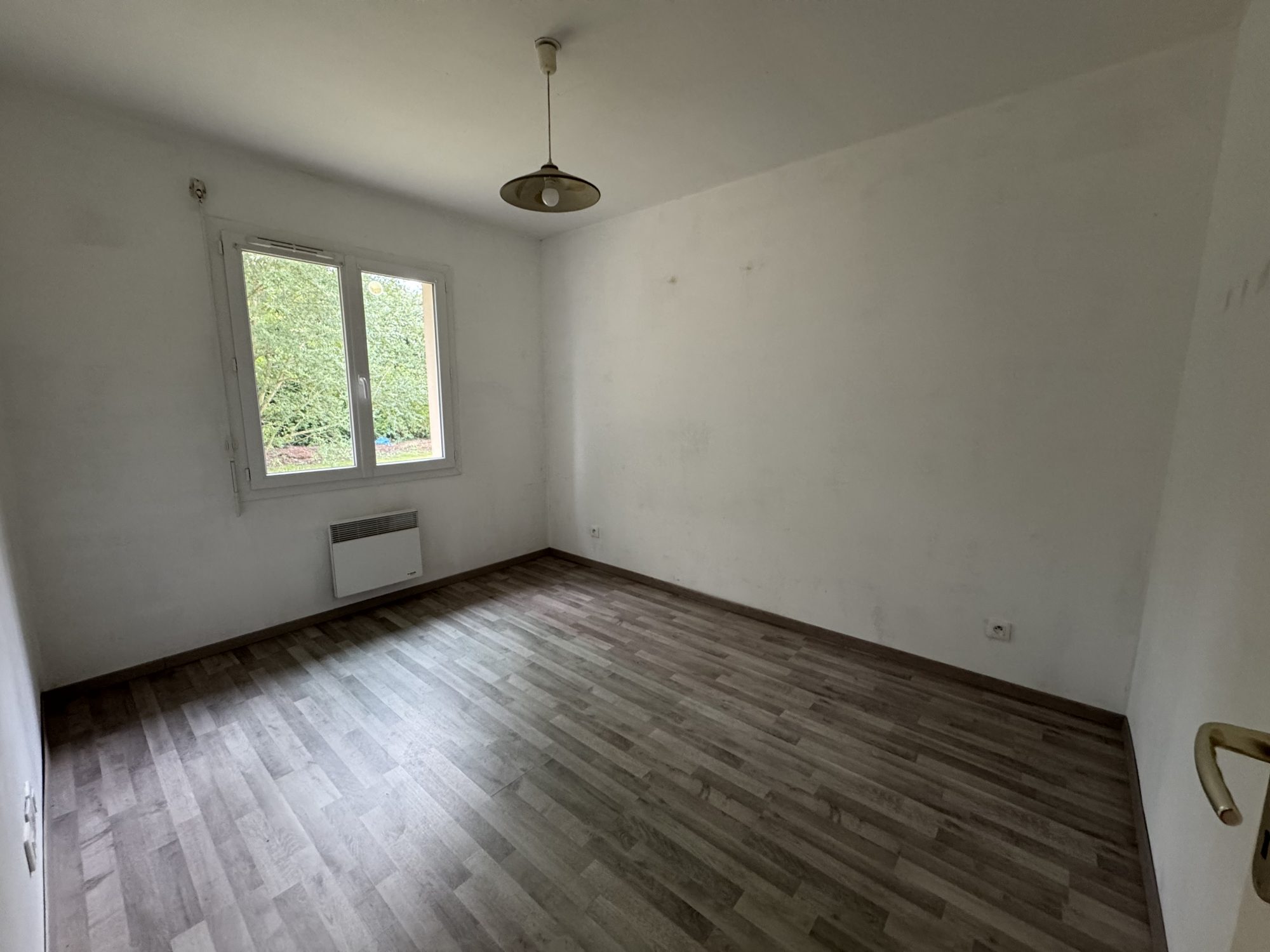 Pièce de vie avec cuisine aménagée ouverte (50m²), dégagement, 2 chambres, salle de bains, cellier et wc.